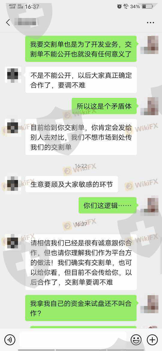 我们在了解平台的时候口口声声说所有的单子是通过流动性对接到交易商的,每个单子都可以拿出对应的交割单,现在我让他们拿出交割单,却左右推辞,我怀疑他们根本就是自己搭建的黑盘,根本就拿不出来交割单