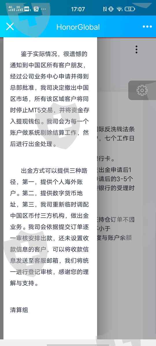 15号各通道全部关闭,账号及相关出入金记录被清空。平台上账户的钱被提至钱包,后被出金,却一直没有到账。