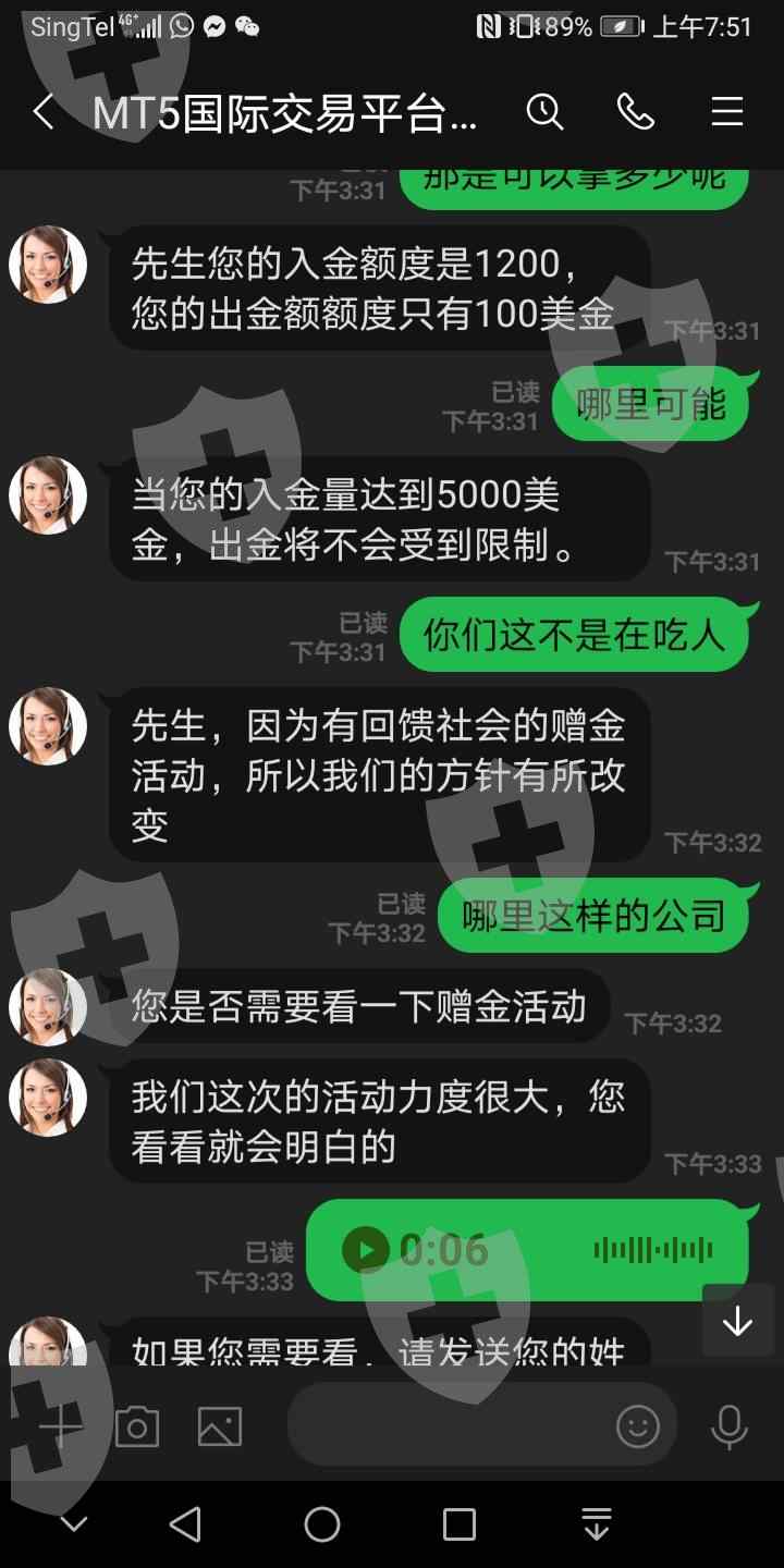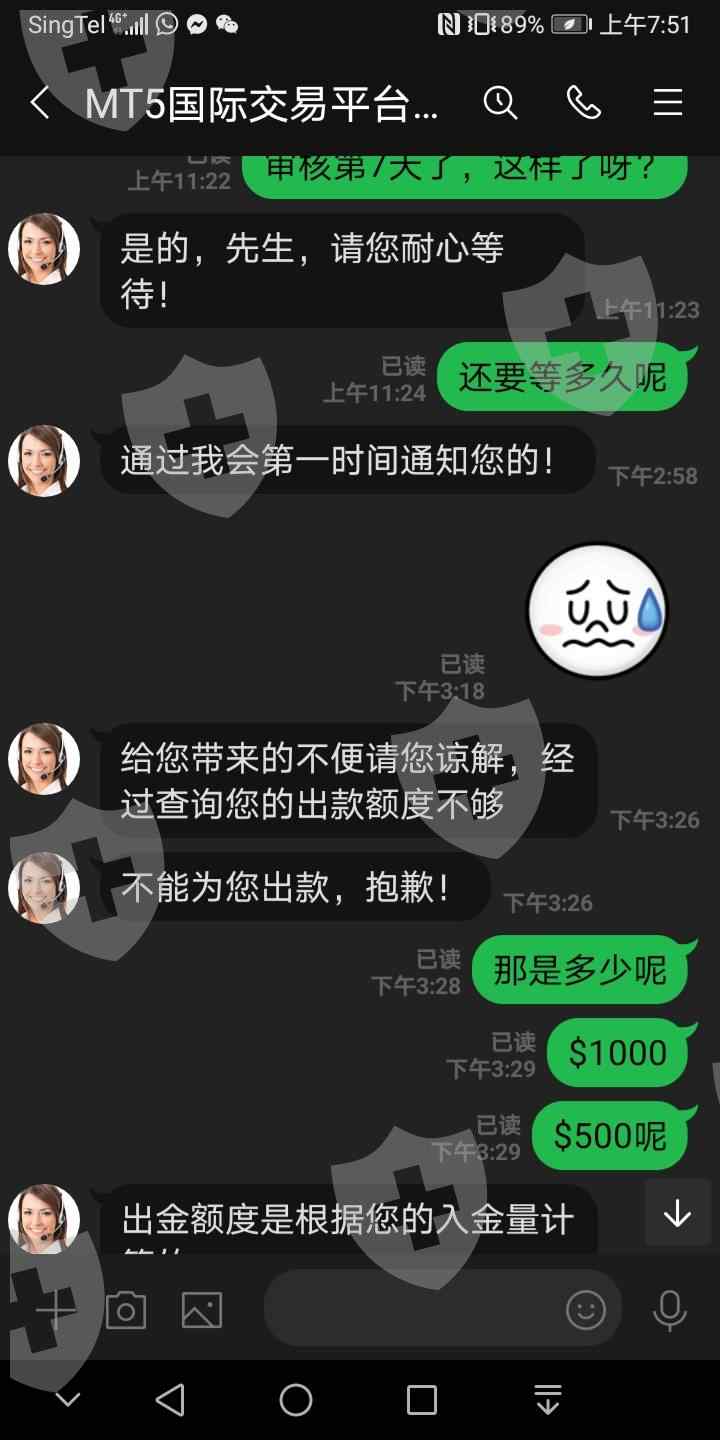 刚开始说要入$1000才可以操作,入金过后要出金,审核了7天,过后说可以拿入金的10%... 然后再问又要我入$5000才能正常出金,什么烂平台呀