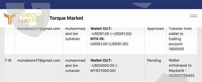 我无法从账户扭矩市场有限公司提取我的利润