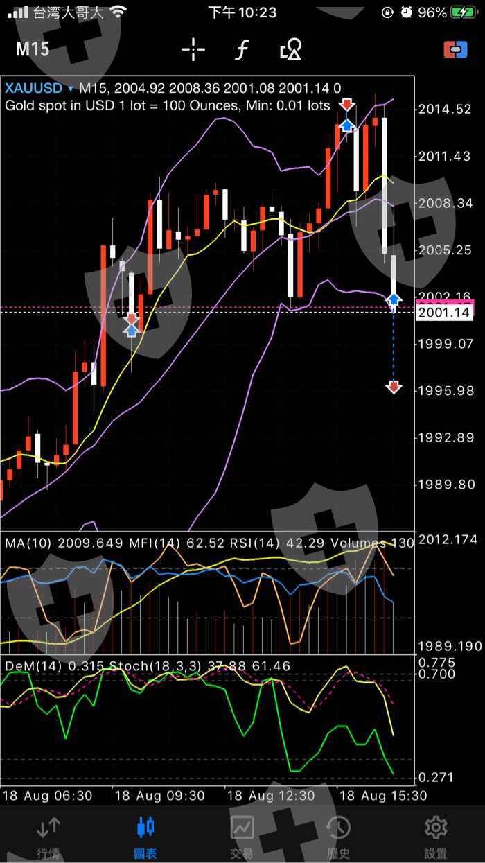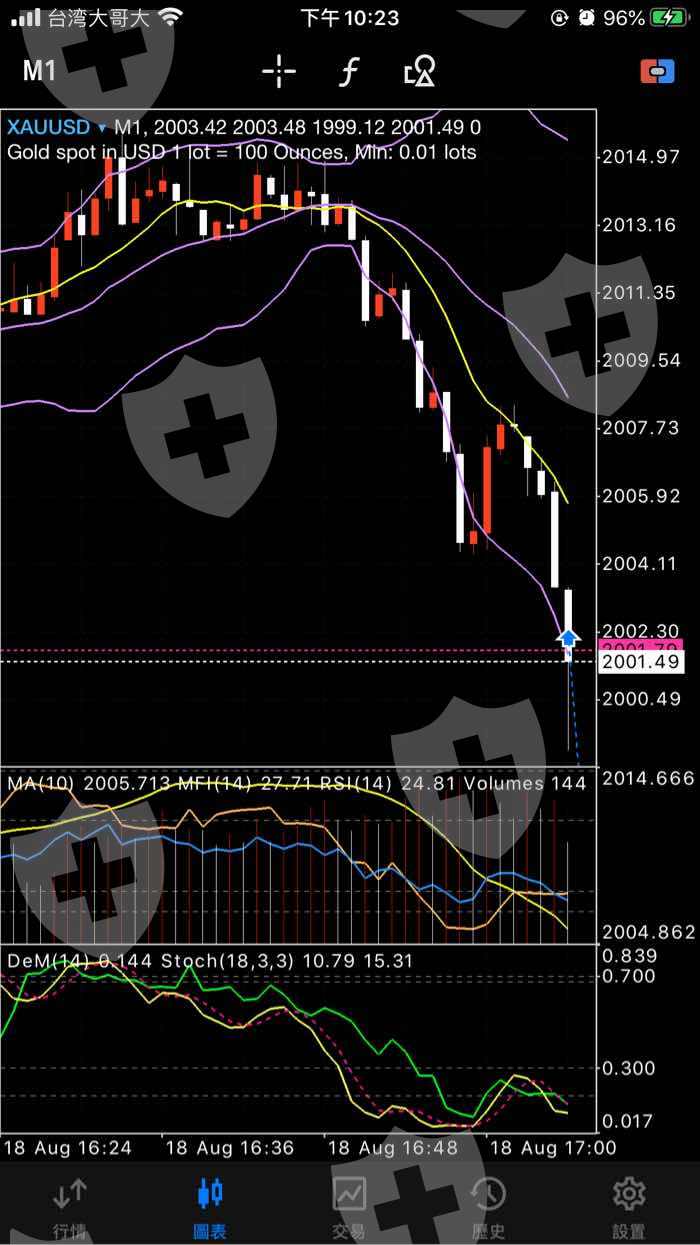 備註:手機螢幕截圖中,可以看到很明顯的交易箭頭,在空白的位置出現交易,而且過13分鐘後的截圖價位也還在2000上浮動。
