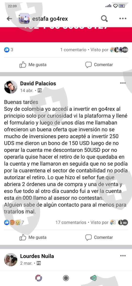 Hola buen dia, sumandome a todas las personas afectadas por esta empresa quienes te solicitan cantidades de depositos, para despues negarse y estancarte retiros de dinero con posiciones abiertas en negativo, para despues sin consultarte cerrar las cuentas haciendote perder todos tus fondos, existen gran cantidad de malos comentarios y paginas que muestran el fraude de esta empresa, cuidado a todos GO4rex ESTAFADORES.