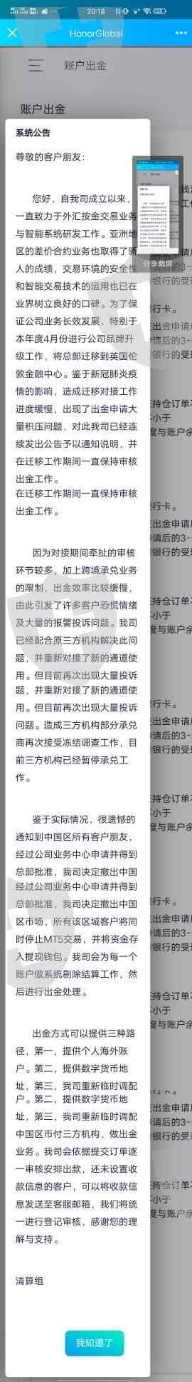 honor 无法出金,清除所有账号篡改客户信息