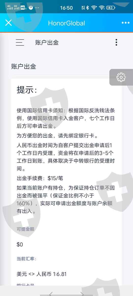 Honor Global 无法出金