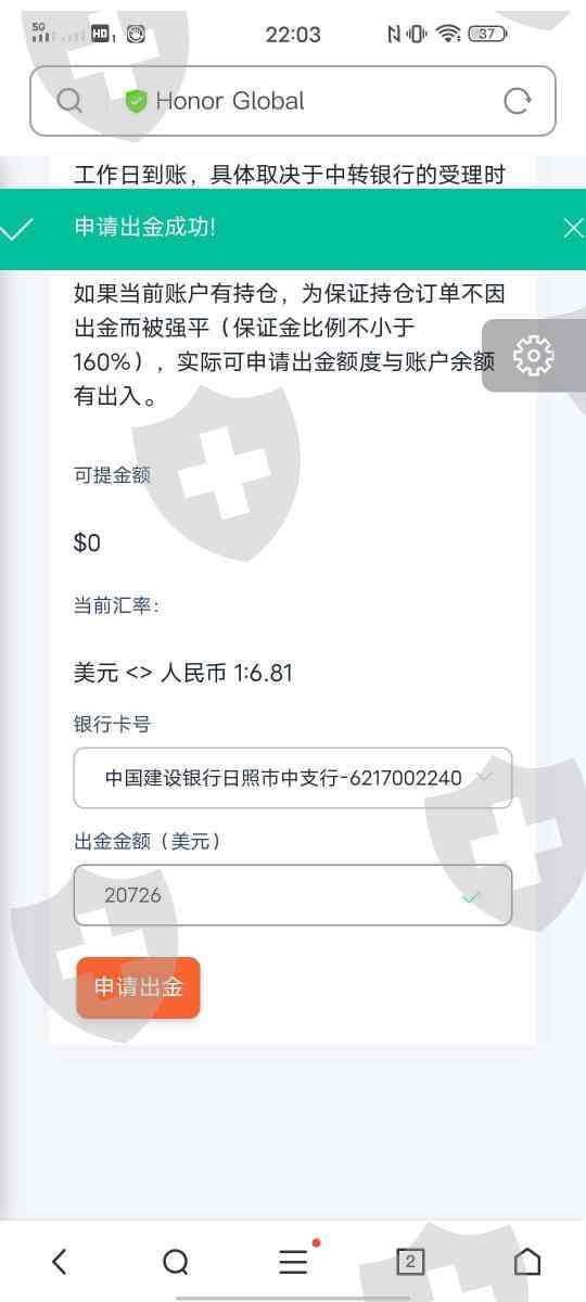 五月份入驻该平台,跟单交易。8月15号宣布退出中国区,投入20000美金,利润725美金。合计20725美金,15号出金至今未到账。平台要求提供海外账户和数字货币账户,入金的时候如果告诉我需要这样入金,一分也不会入。平台跑路了,大家一定引以为戒,不要贪图小的便宜上当受骗,我觉得这个就是旁氏骗局。