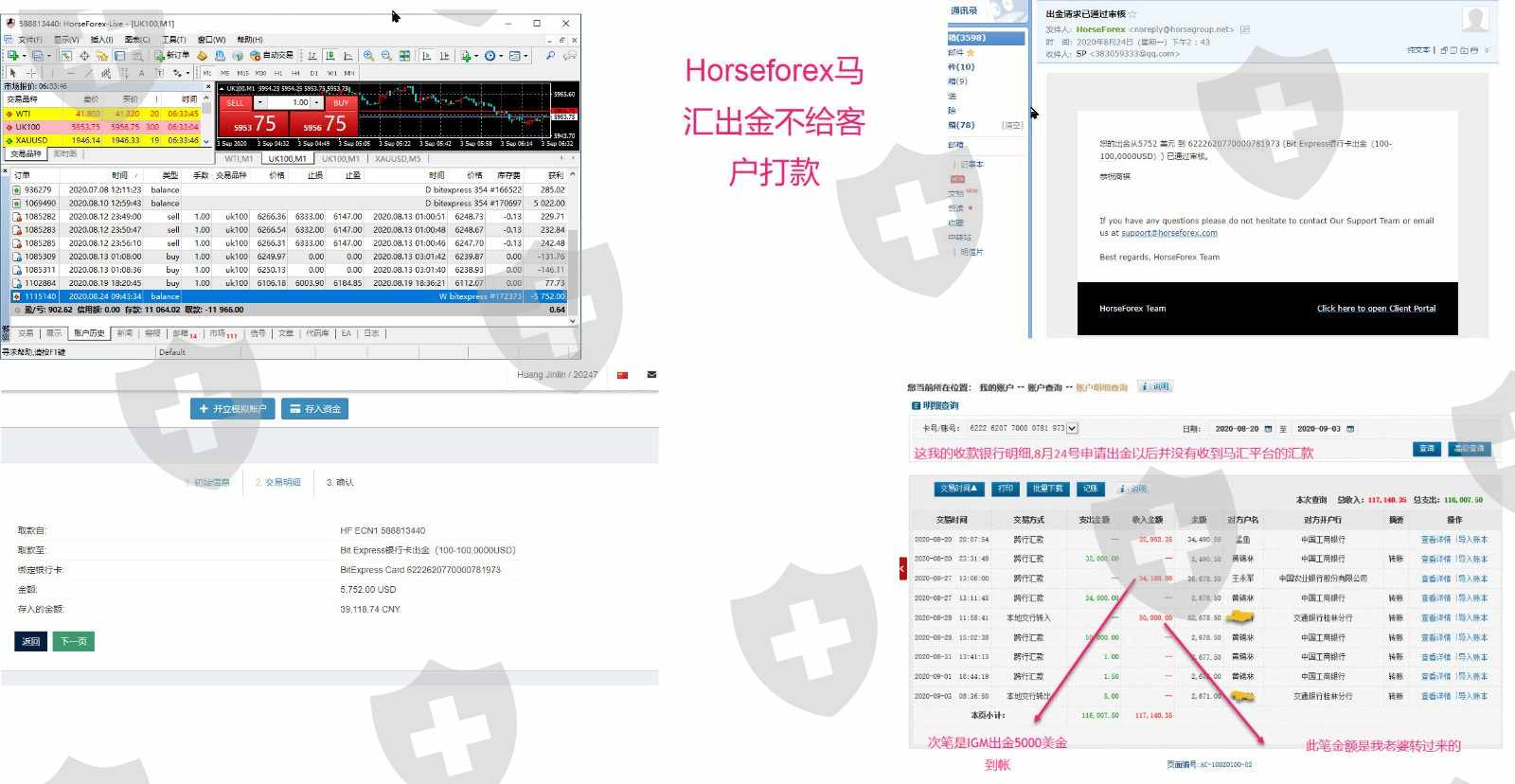 Horseforex马汇 入金5000多正常交易盈利500 连本金都被黑了 天理何在?