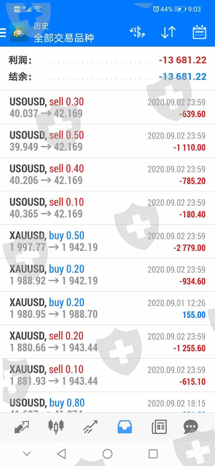 GMI骗子平台,每个交易日停盘前一分钟点差大幅浮动,每天还不一样,一般180-400之间,恶意浮动点差导致账户爆仓。9月2号停盘前账户净值2500,保证金比例230%。凌晨6点停盘点差上涨导致账户保证金低于100%全部强平。第一次见这种停盘点差暴涨的平台,就算是浮动点差,也不会是每晚停盘固定上涨,而且价格还不固定,恶心平台,就是故意拉爆账户(9月2日黄金收盘价1941.6,强平价1943.44,美原油收盘价41.473,强平价42.169)