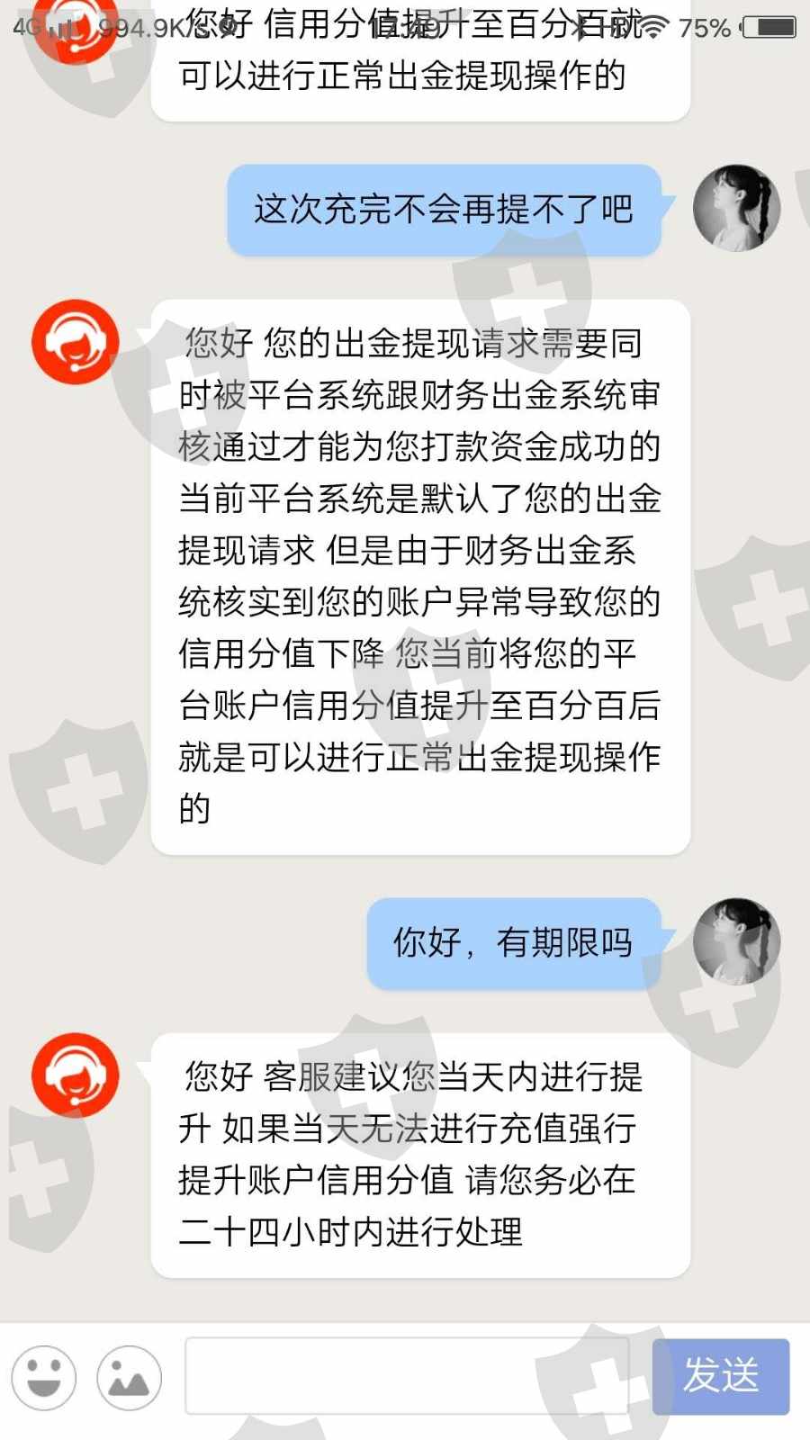 我是7月23号被朋友圈一个叫张雯的人介绍入IG集团的一个平台进行外汇操作的,说是有程序员带领操作百分百盈利,盈利到账后按照百分比收取佣金就行,于是我入金9万由程序员带我操作,操作完后我第一次提现平台说我的账户存在风控风险让我交17万多的保证金,我交完以后又说我的银行卡账号不对导致我的平台信用评分不够让我充值58000进行提升评分,我没交,现在我的账户直接被冻结了
