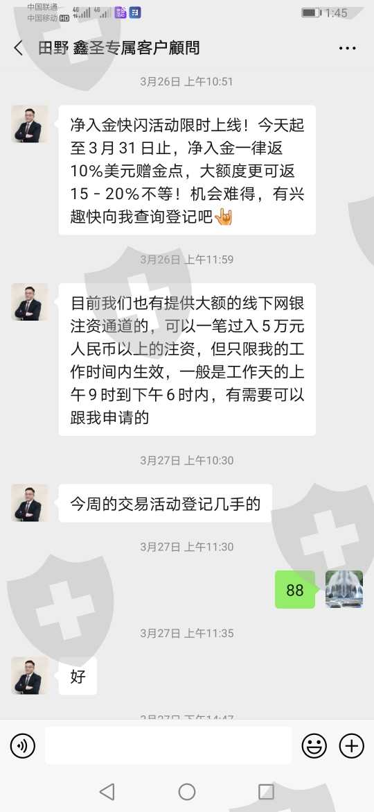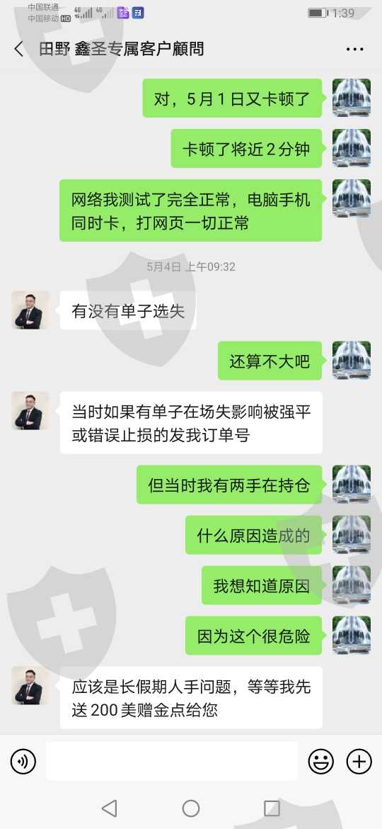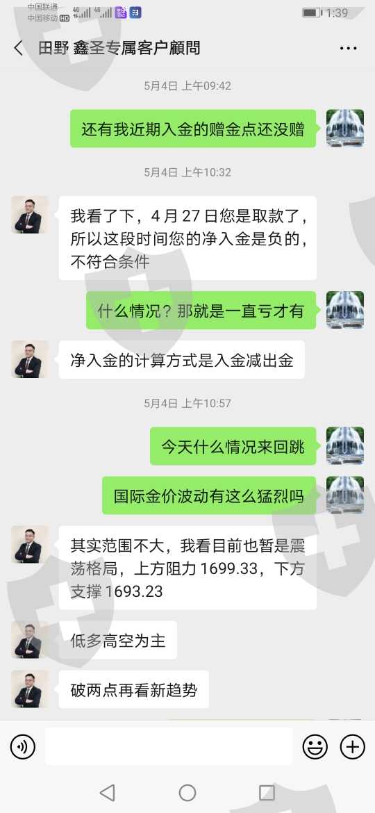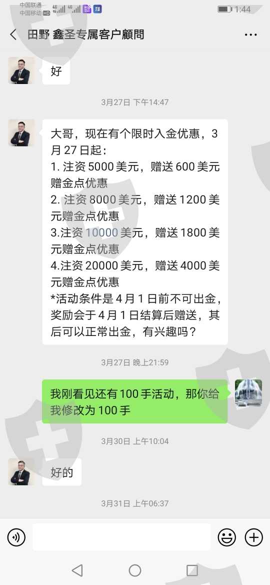 鑫圣金业引诱我大额上百万入金,入的多赠的多,如果中途有取款还会倒扣已入金的赠金,鼓励我大额线下入金风险最大化,无法监管,总是滑点让我赚了卖不了,一亏就亏光,赚小亏大,行情大时断网,不让入金补仓,亏先后马上反向拉,