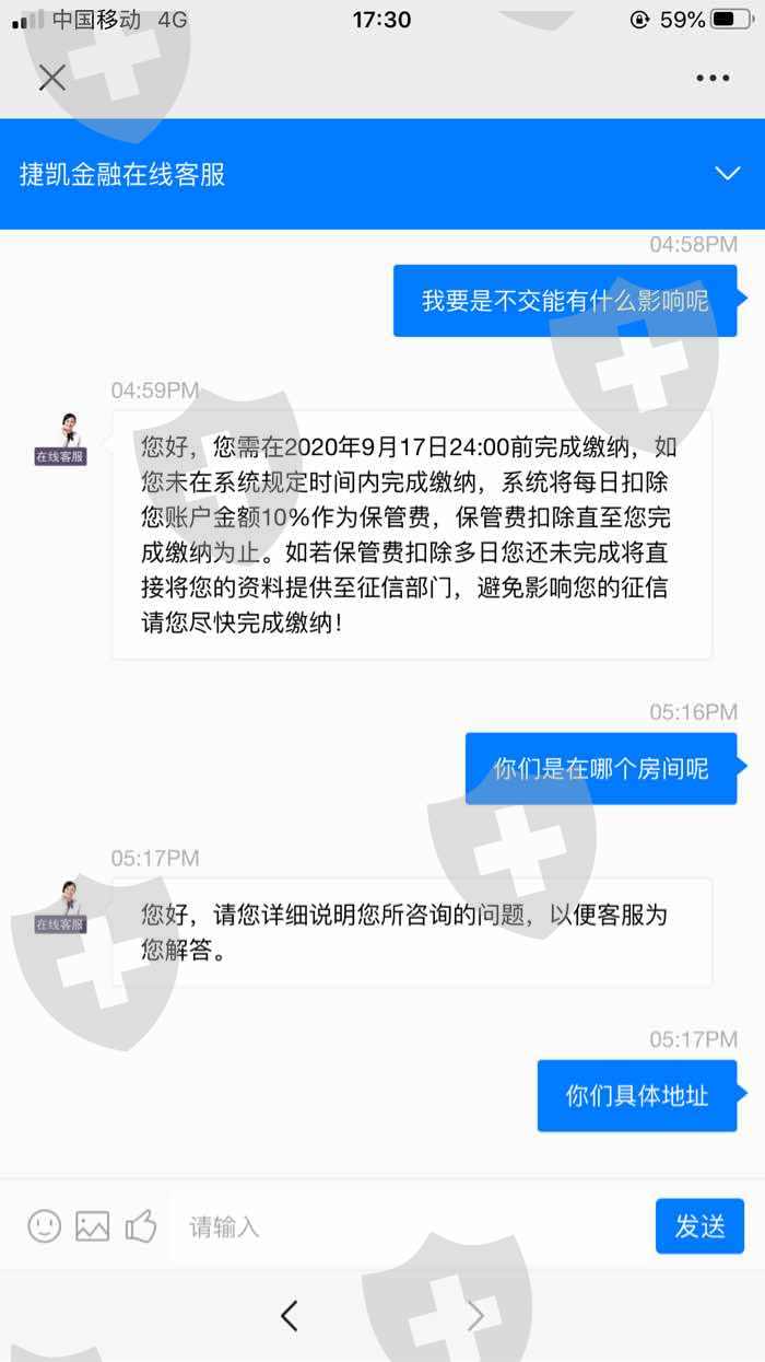 捷凯金融骗去用户本金,还要求缴纳高额保障金