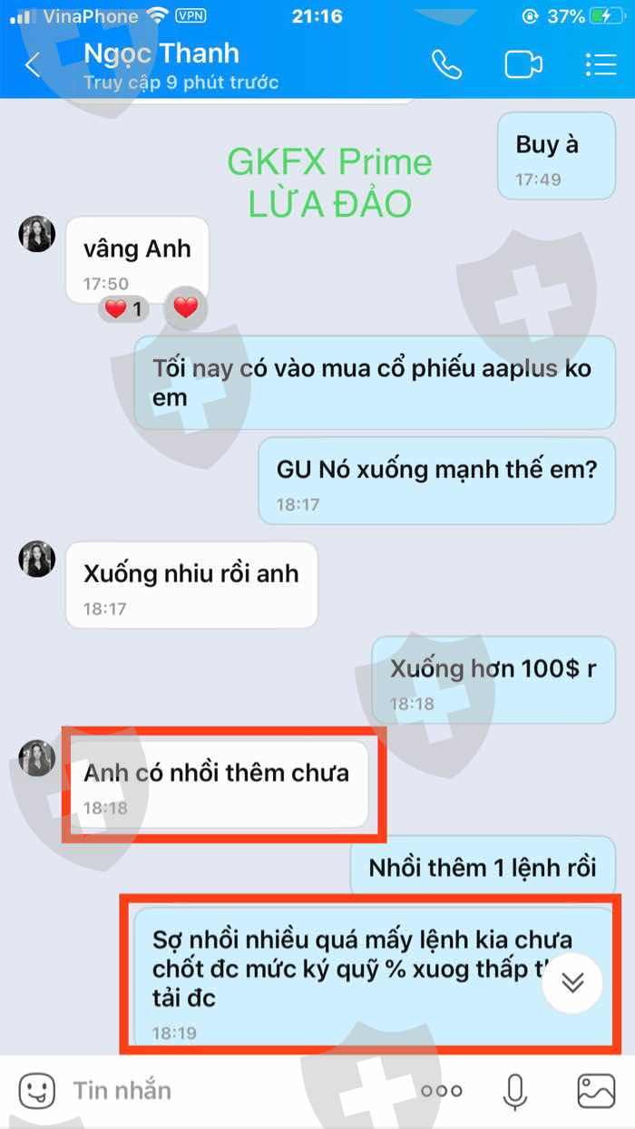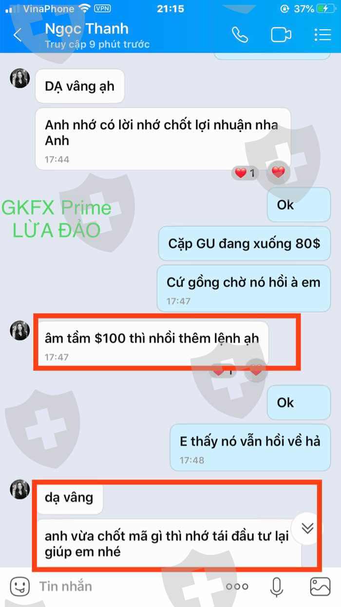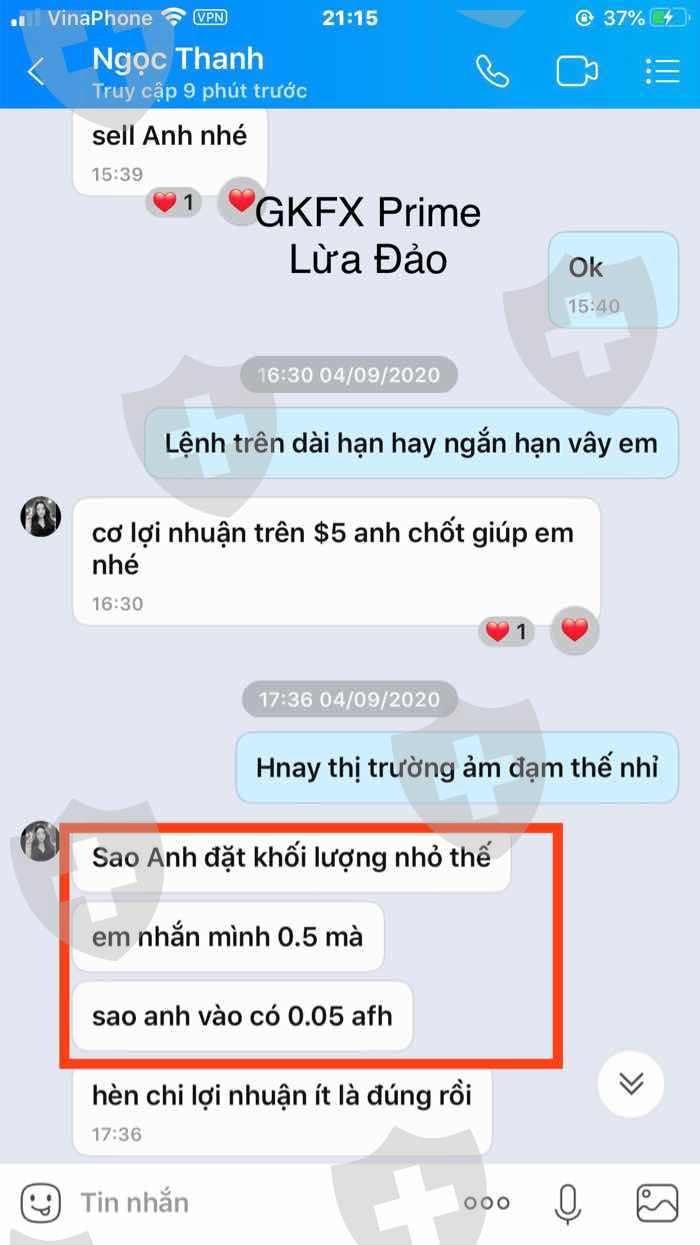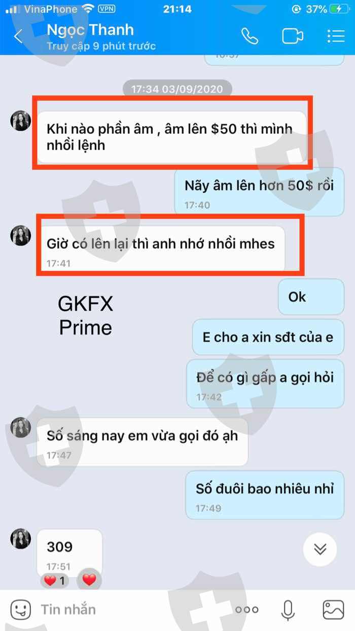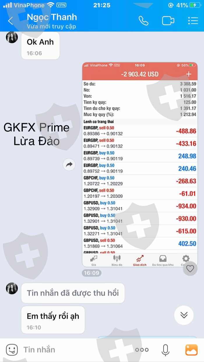 Sàn GKFX Prime Việt Nam chuyên LỪA ĐẢO, Sàn Ôm lệnh, Can thiệp Nến nhằm đánh cháy tài khoản nhà đầu tư. Làm ăn chộp giật sẽ gánh hậu quả sớm thôi. Quả báo đến sớm thôi.