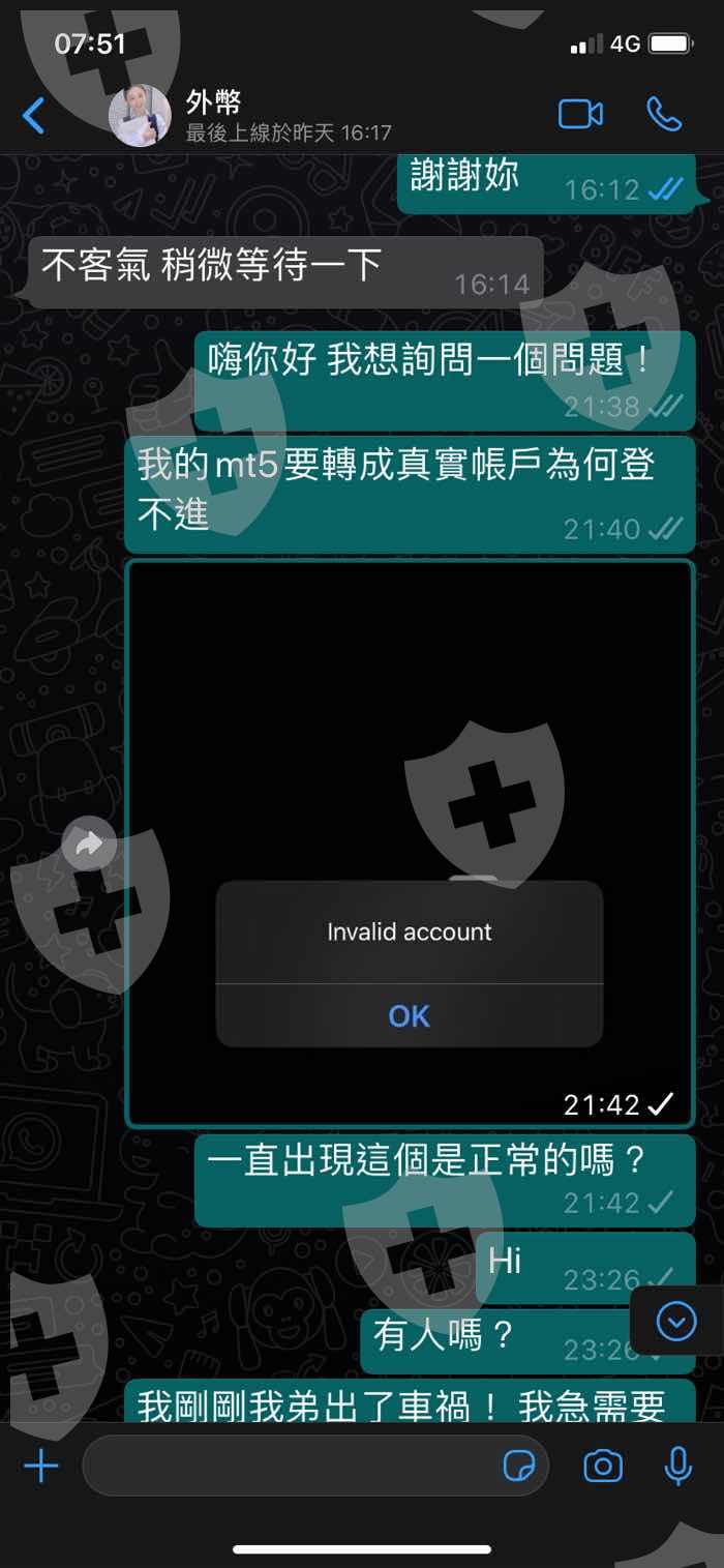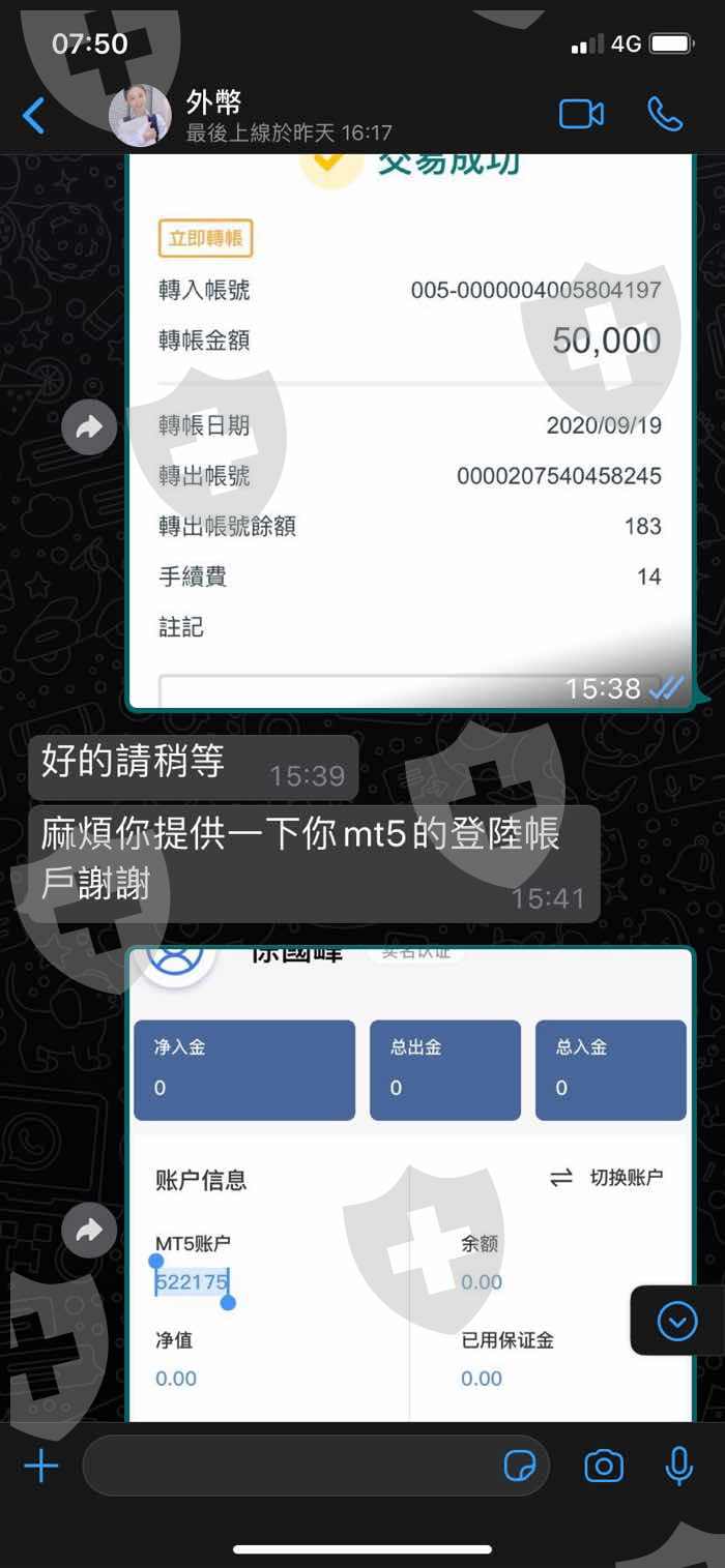後來他給我看真實帳戶 說他賺了很多錢 已經完了2-3個月了 一開始我還是半信半疑的 然後叫我載whats app 要我給他手機號碼 身分證要辦開戶 我也跟著辦理了 然後說要入資金才能真正開始投資要100000元才行 我猶豫了半天 結果她一直問我投錢進了沒 說我是不是不相信她 然後開始瘋狂追問 直到我跟著照做了 錢是真的有進平台 我也確實看到錢入帳 可是當我發現那平台怎麼要也無法登入怪怪的 只看到錢無法取出 才發現自己受騙了