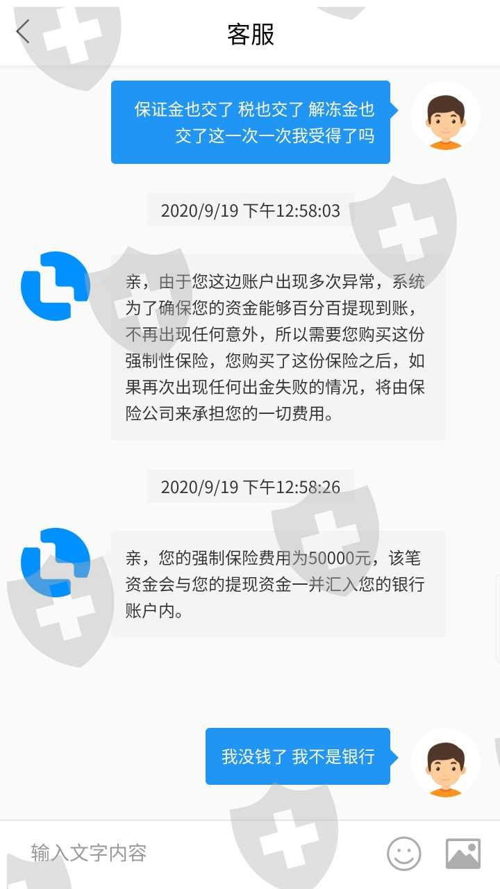无法出金 让各种充钱 保障金 解冻金 强险 税金 充完钱了 客服不回复 还把我禁止登录 盈利的不要了 把我的本金还给我 现在把我禁止登陆了啥意思 客服还一直保证能到账