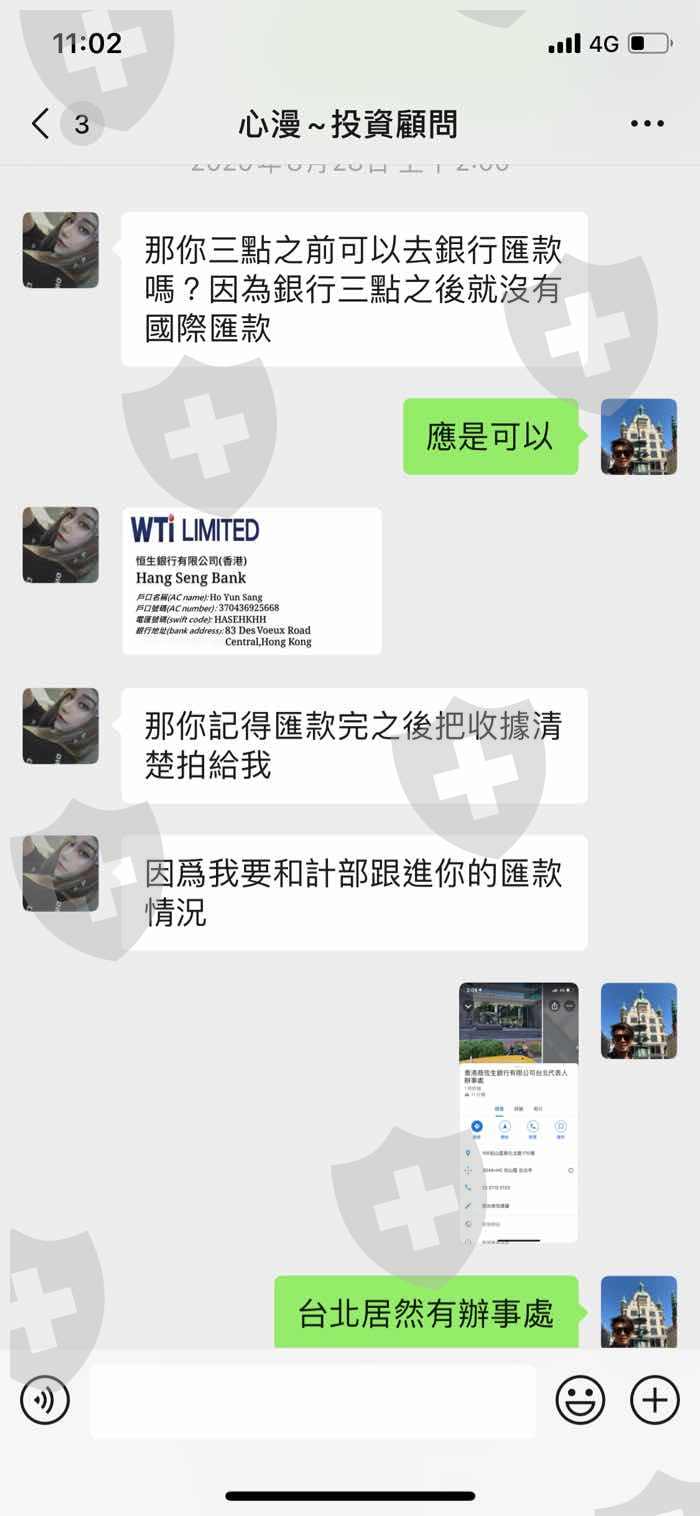 後來我知道她在香港外匯公司(WTI-Limited hk)做投資相關工作