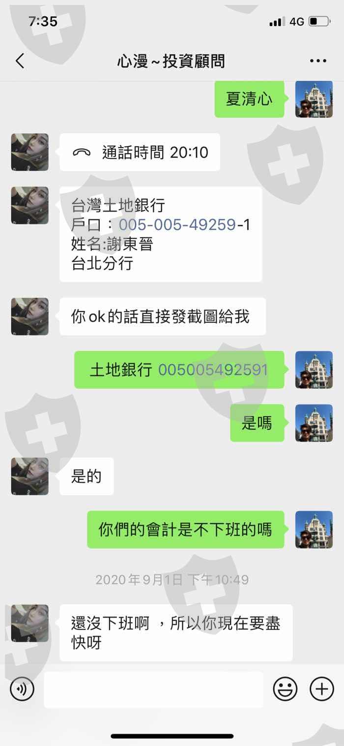 後面入金都是匯到台灣的土地銀行帳戶(戶名:謝東晉)