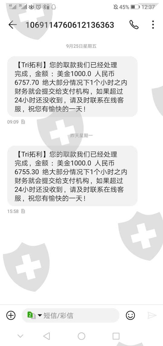 从周五出金到下周二都还没有收到,一开始说24小时内,24小时到了问客服还要等24小时,现在都100多小时了还没有到账。