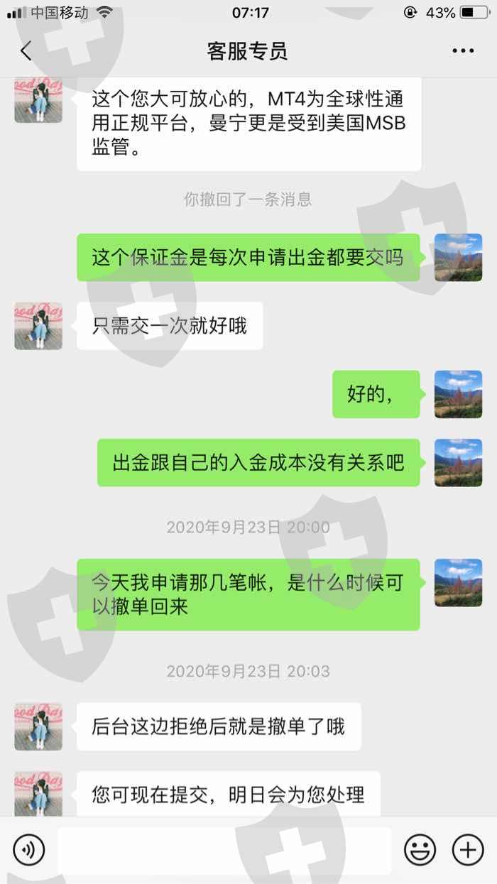 曼宁平台根本没有办法出金,只知道让我入金,出金还不能多单提交,出金还需要交总金额的5%,然后9月30日就联系不上了