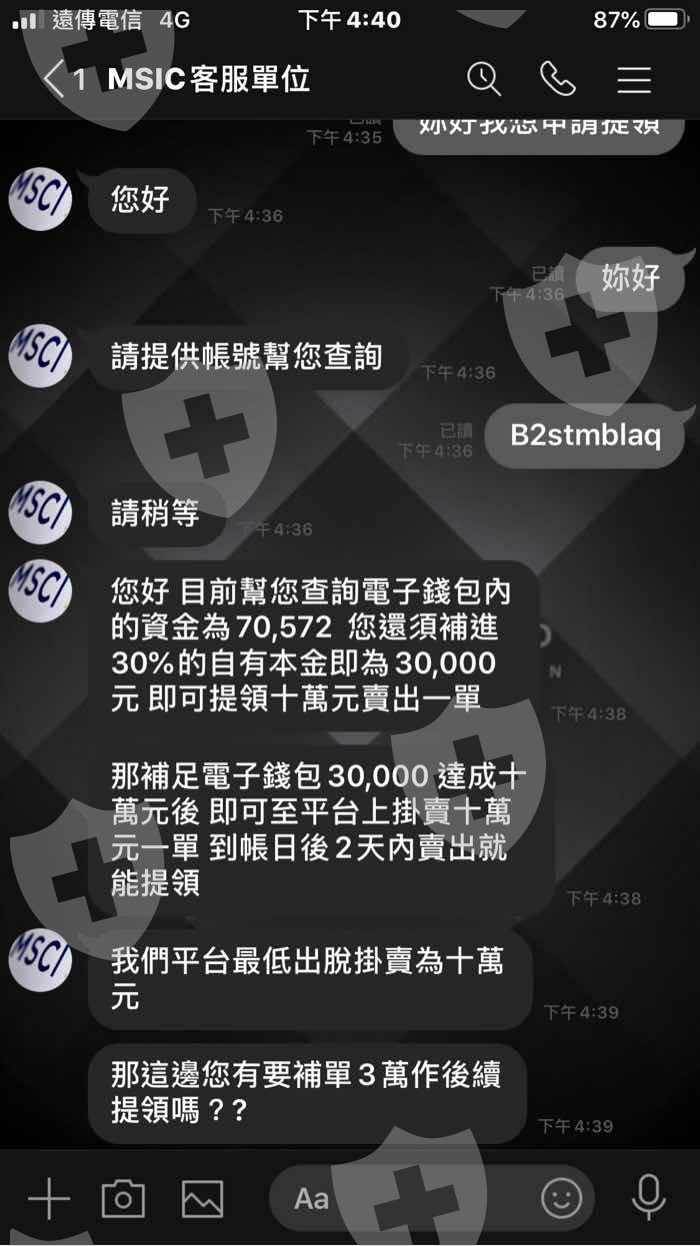 一開始加入並沒說到什麼保證金的問題,到後面要出金的時候專員才跟我說,跟下圖我後來去找問題時候一樣,還要在入保證金3萬才可提領,我並沒打算在入金也不可能在入金,一開始投入的資金就算了,但因為我銀行帳號有在那網頁綁定了,希望可以幫我保護這個銀行帳號不被他們拿來惡意使用 如果可以 我在私下提供帳號給您