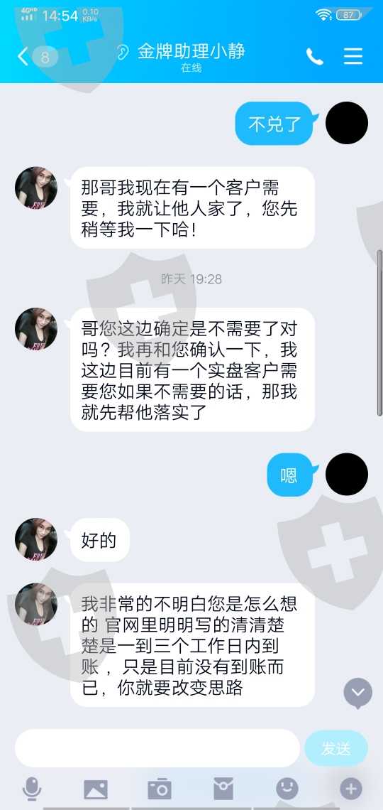 出金申请时间距今8天,其中有6个交易日,客服全是话术,不解决问题,疑似无法出金