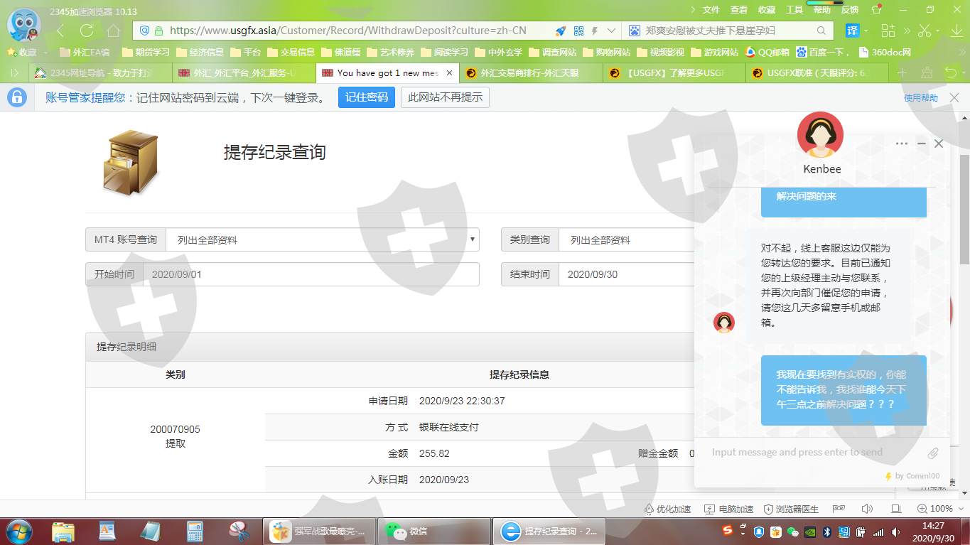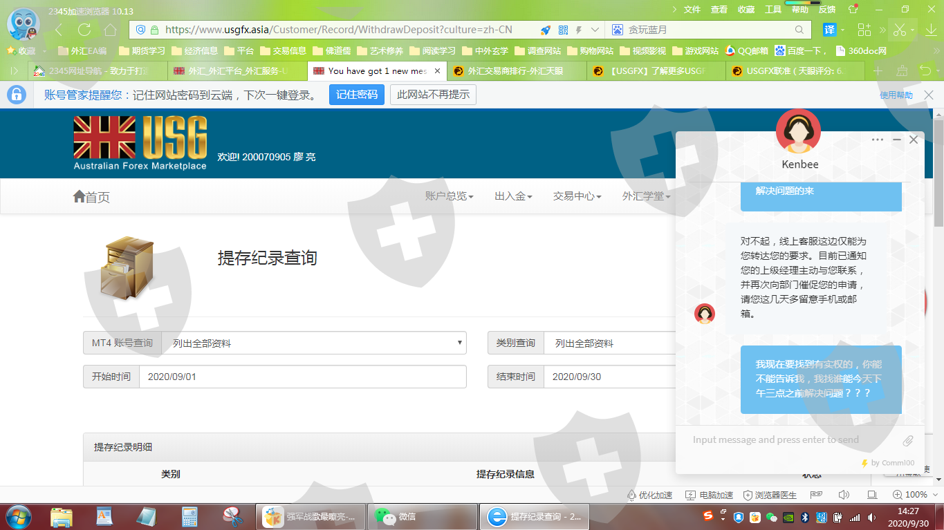 图片继续上传公布:出金申请时间距今8天,其中有6个交易日,客服全是话术,不解决问题,疑似无法出金。