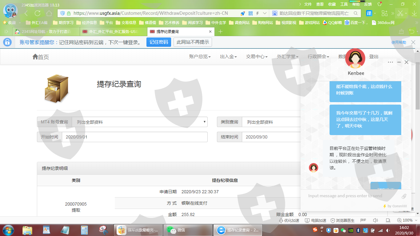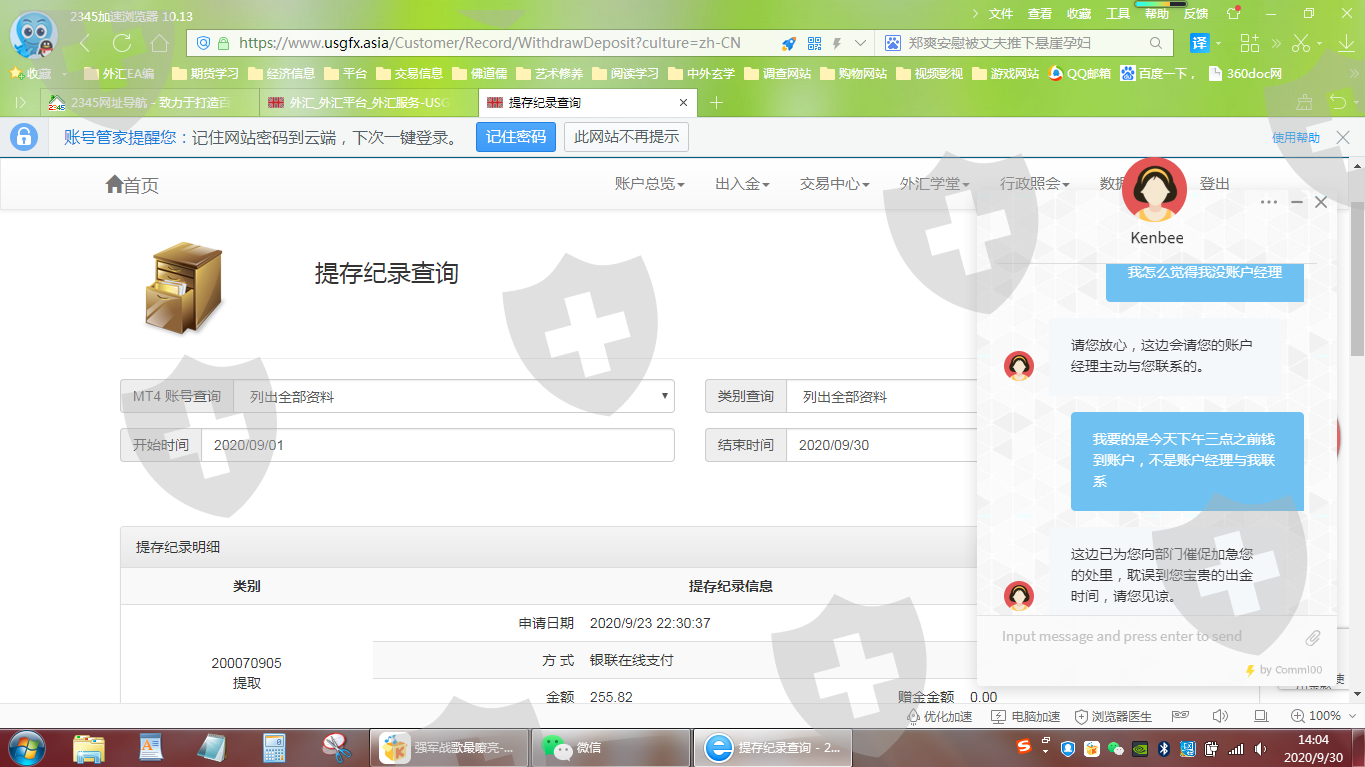出金申请时间距今8天,其中有6个交易日,客服全是话术,不解决问题,疑似无法出金。与客服对话见图片。
