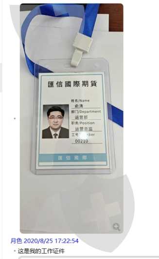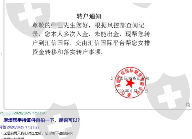 汇信国际运营部总监俞涛(见照片)介绍我从原来的平台转户到汇信国际期货平台。资金平移到汇信国际交易平台后交易软件只能查看信息不能操作。俞涛起初还耐心介绍一定要规避各种黑平台的陷阱,并答应帮我从现在的汇信国际平台办理出金。在收到手续费后,俞涛就再也联系不上了,QQ无效,微信拉黑。汇信国际的交易软件再也登录不上。目前俞涛收取了我给的出金手续费后人失踪失联,我的账户被黑在平台无法登录。
