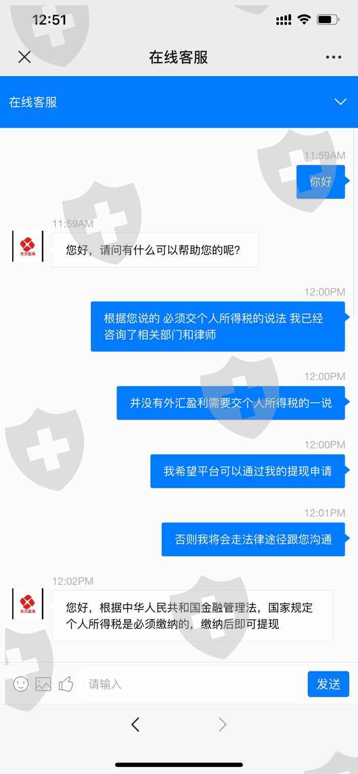 东方蓝海 黑平台 在盈利后先后让交保证金及个人所得税分别16000.15000元 不知道东方蓝海跟这个东方金融是不是一家 大家小心