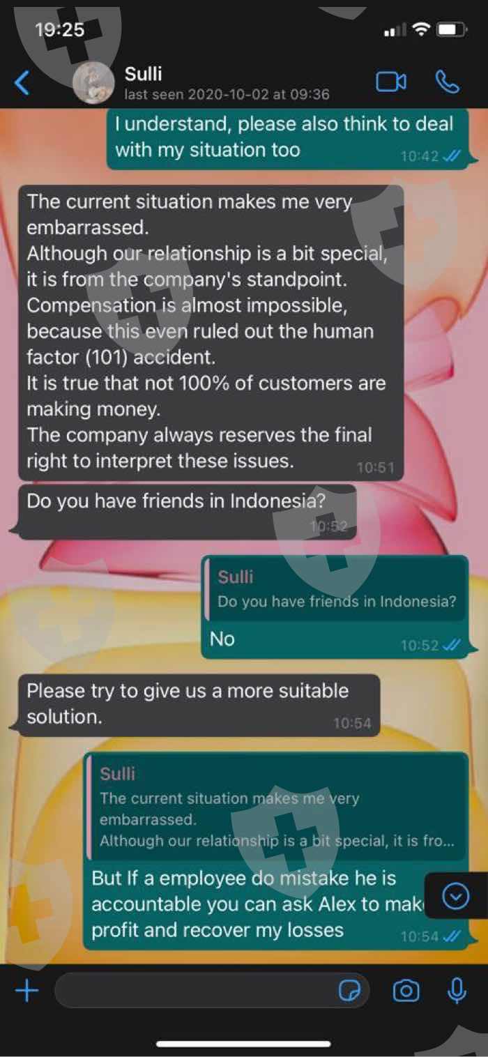 I was trading with lonny prime since March 2020. I met a Chinese girl named Sulli on tinder and she introduced me to the world or forex. I was impressed then she asked me to deposit money in real account and get as many subordinates you can get so that we can help people in this pandemic. I bought 5 subordinates and myself. On September 3, 2020 their Analyst Alex traded 101 lots USDJPY and burned all my funds 57000$ and now they are not responding and they manipulate mt4 as well as WhatsApp.