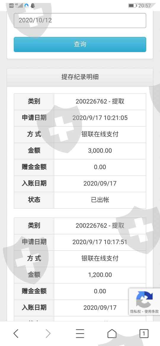 2020年9月17日和九月19日,九月20日出金的,目前时间是2020年10月12日,20多天了还没到账
