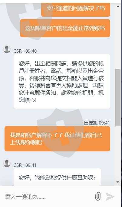 24号出金到现在快一个月了,还没到账,问客服就说让提供信息提交给相关部门,相关部门会联系我,我提交了十几遍,等了十几天,也没见到有人搭理我。现在问客服还是一样的态度,会不会遇见黑平台了