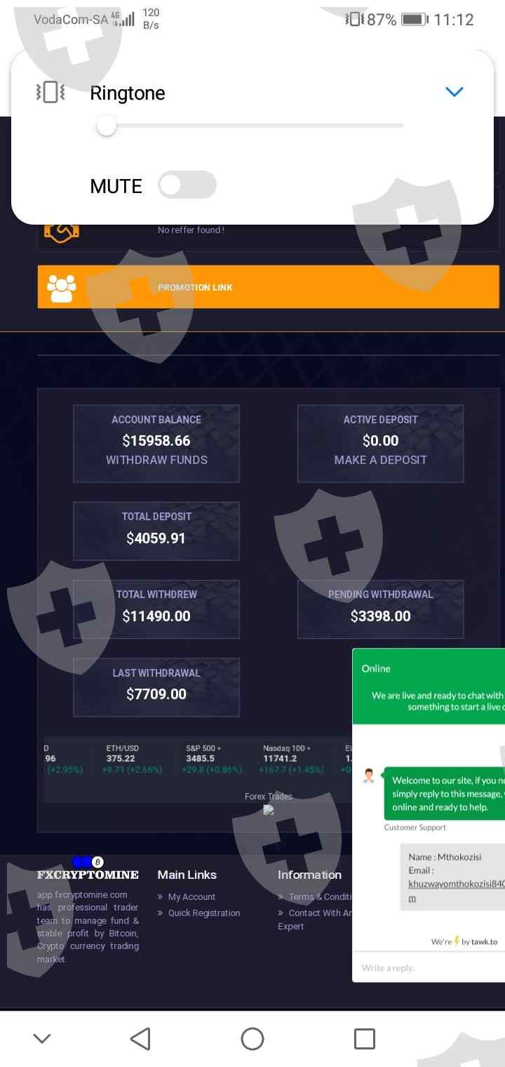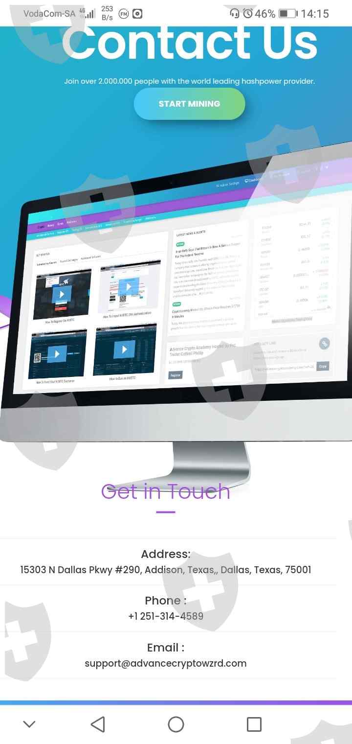 Hossein Zahrat或Rick Kruse Michael向我骗了超过4150美元,承诺的利润为30600美元,他们一直让我存入资金以去提款,你能想到的每一种费用他们都让我交,迄今为止,尚未从该诈骗经纪人那里收取一分钱。说它位于Texas 15303N Dallas,#290 PKWY, Addison Texas,我不确定这是不是真的。联系人+1 251 314 4589 www.fxcryptomine.com电子邮件[3b] support@advancecryptowzrd.com 侯赛因/里克:+1 254 744 9343(whatsapp)