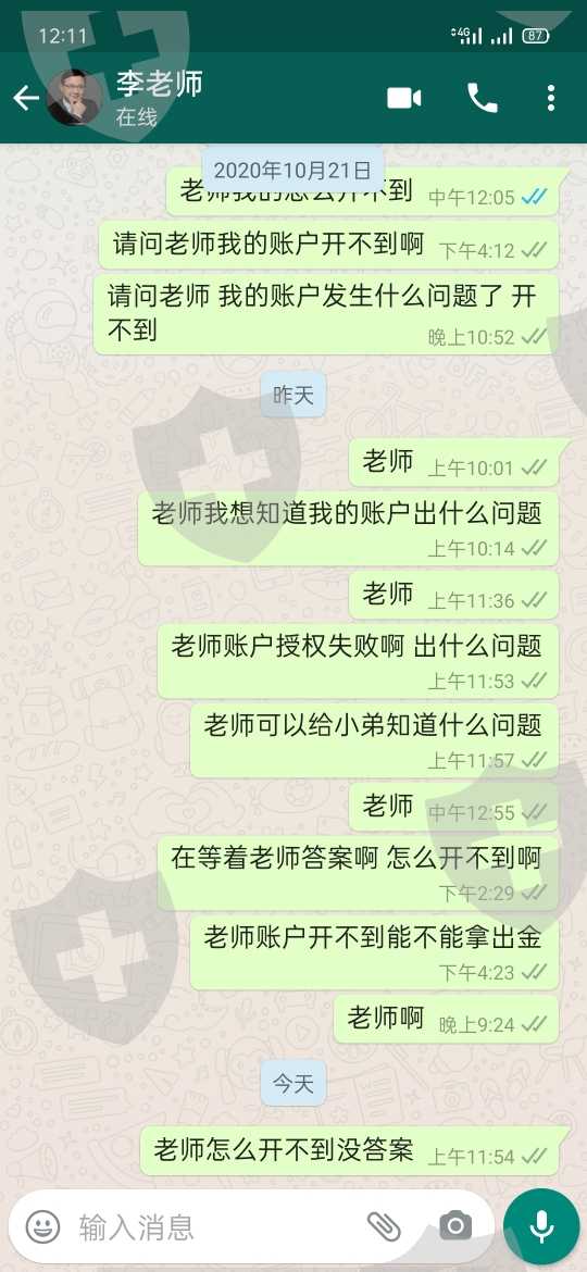 老师也不回复啊账户也开不到要出金也不能 老师也不理我什么都做不到钱也没了