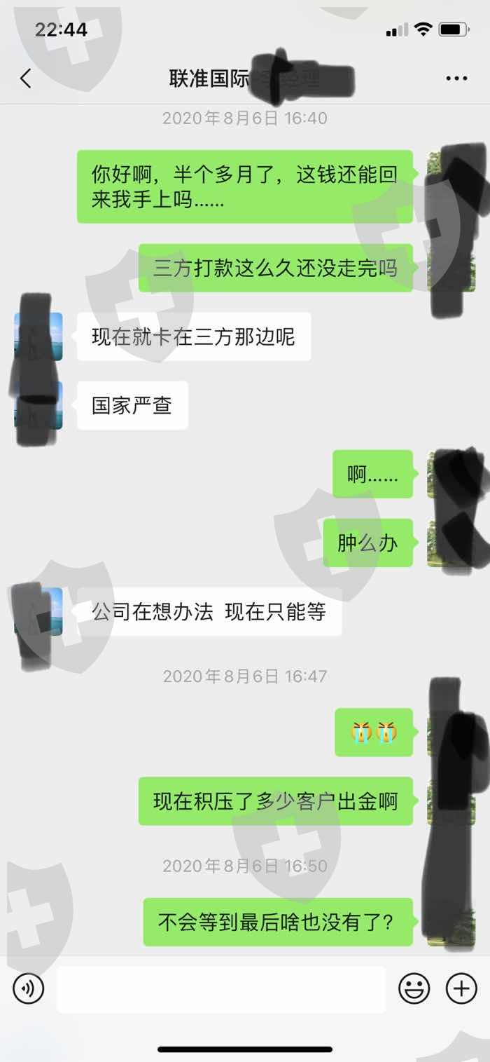 2020.7.20左右申请出金,7.22显示资金已转出,但至今三个月了仍没有到账,期间问客户经理说卡在第三方支付了,需要耐心等一等,9月以后再没回复消息,在线客服永远只回复已加急处理,没有下文。