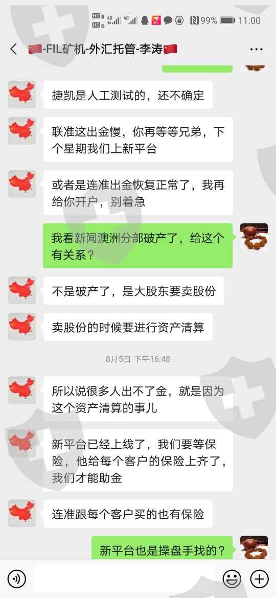 我从网上认识一个人,也见面了,然后让我在联准平台做,一个多礼拜爆仓,剩下了钱他说回本,然后他把好多账户合成一个,刷单子,没有盈利,但是刷了好多手,可是现在说出不了金,我现在知道他是联准的代理