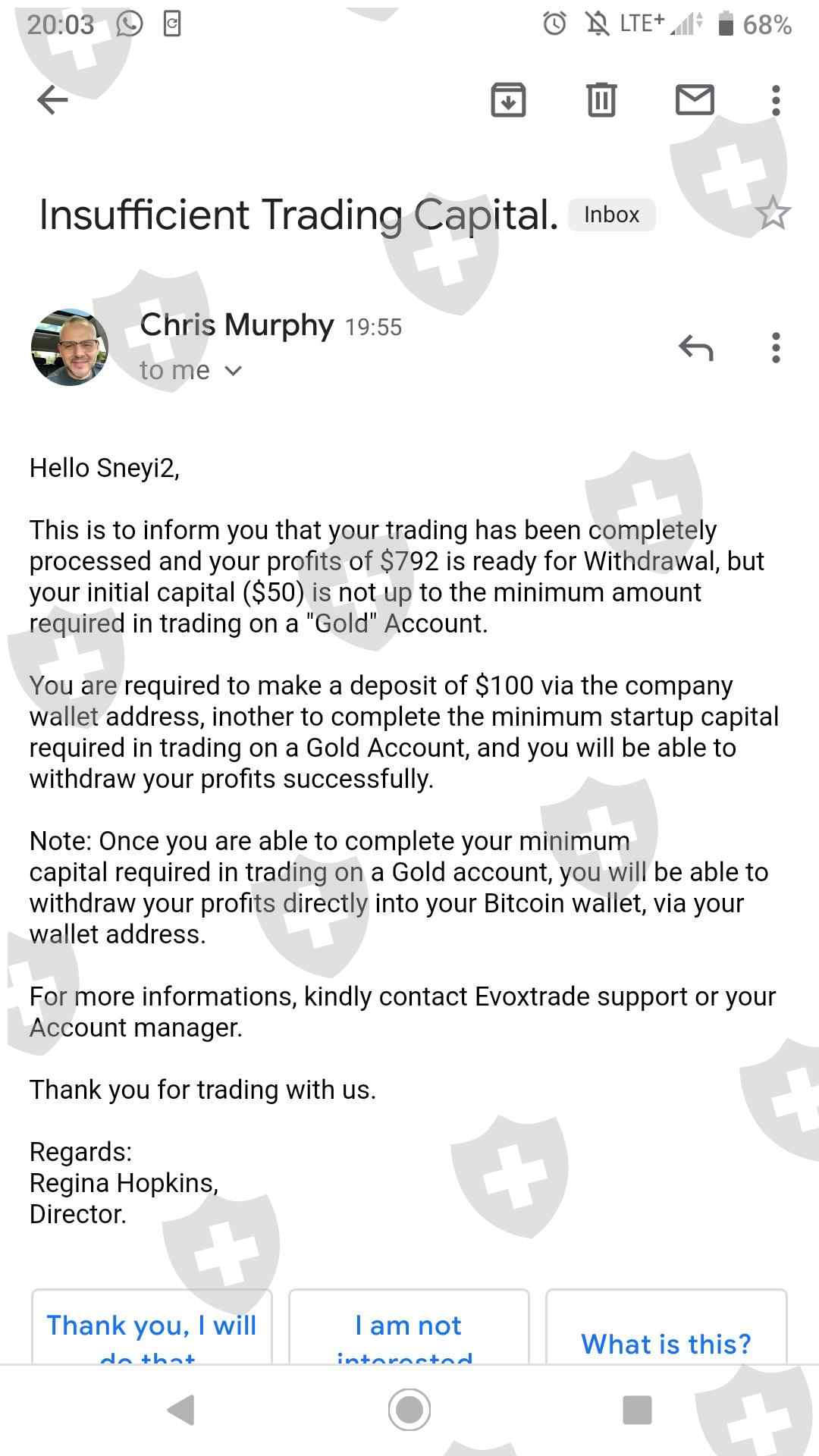 我投资了50美元,并答应5个工作日后才能获利。现在我必须提款,我被告知要再支付100美元才能提款。伙计们,请远离这个骗局