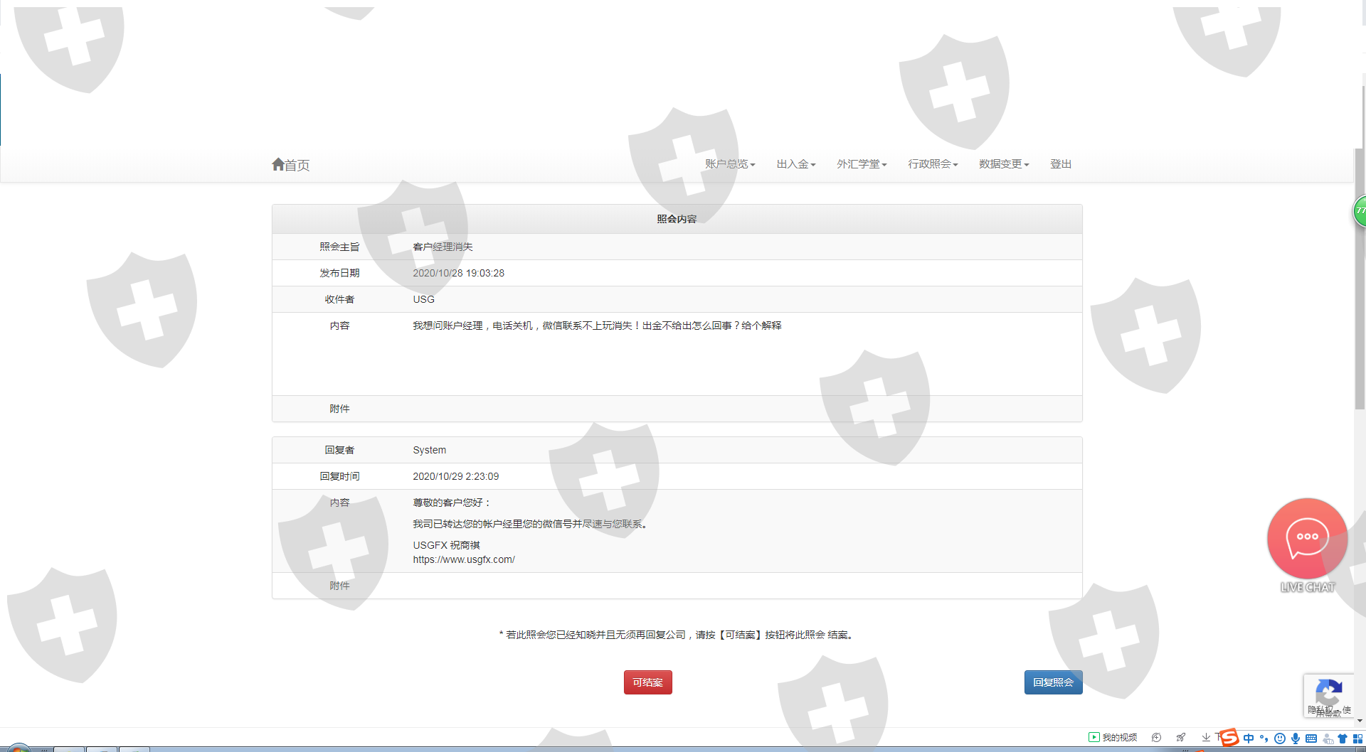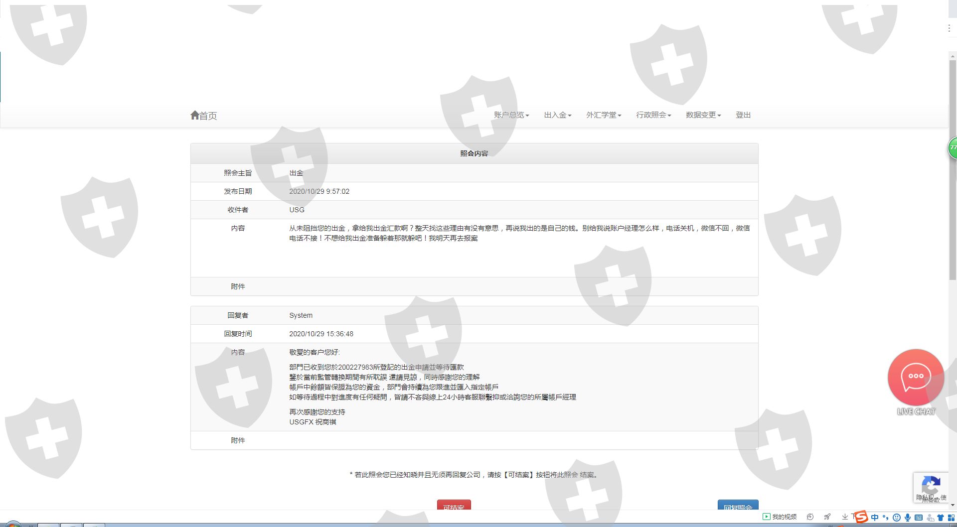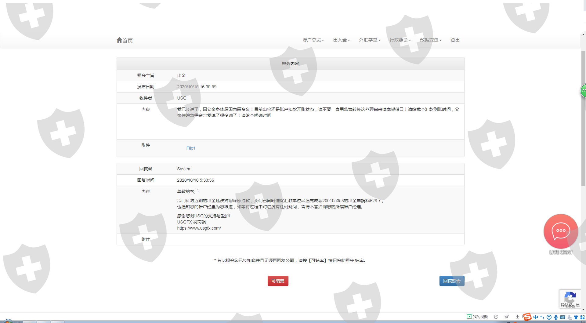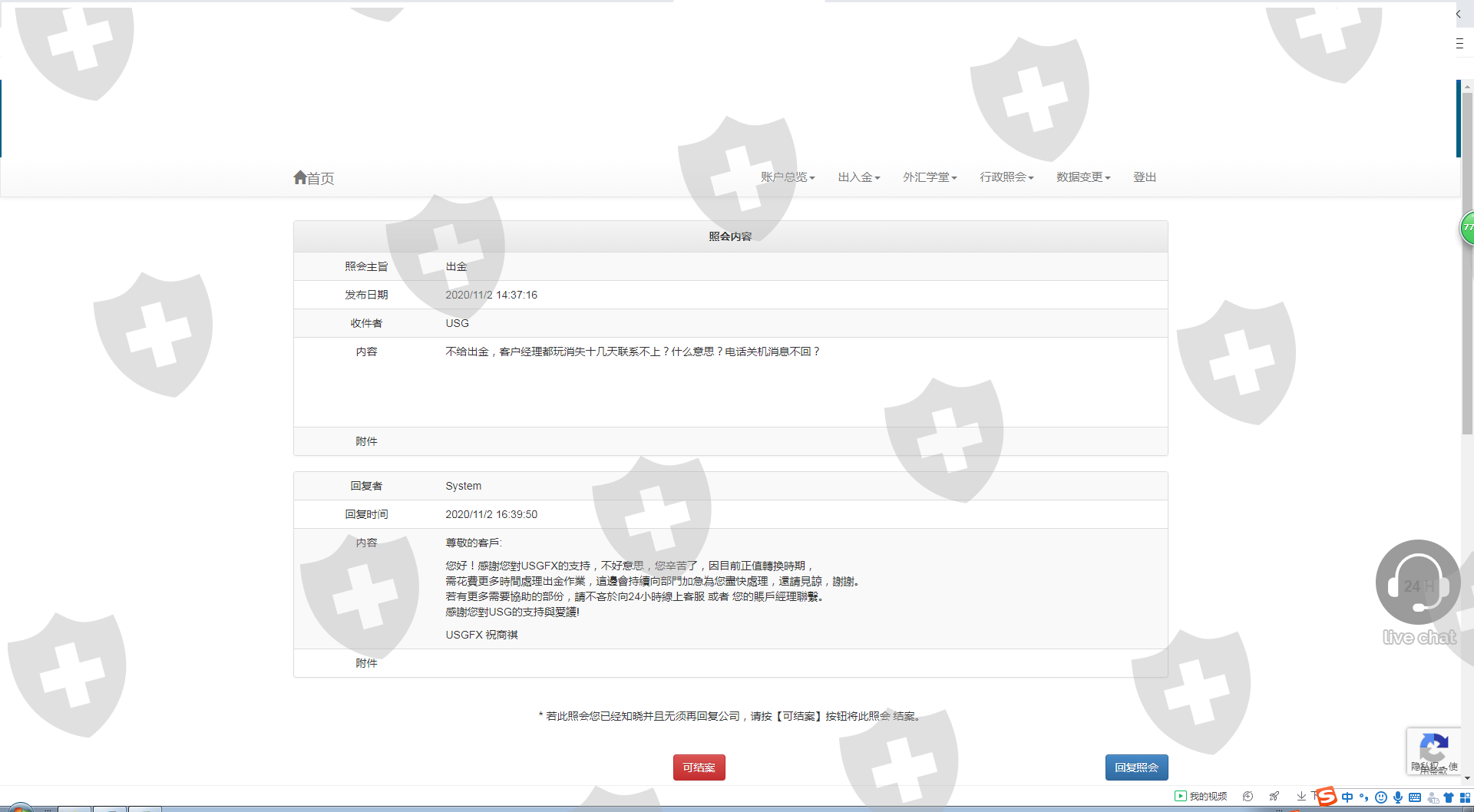 本人USG联准国际客户,USG联准国际不给出金!期间父亲因心脏搭桥手术需要手术住院,急需资金,无良USG联准国际各种推脱不给出金,我就想知道USG联准国际有没有良知,账户经理玩消失电话关机微信发消息不回,打微信电话不接!