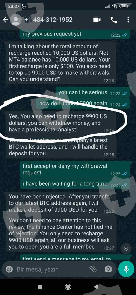 At first they said that $ 10,000 could be withdrawn and they told me to wait 20 days to withdraw the money, I waited and I earned $ 10,000 by trading, but when I wanted to withdraw, they said I had to load a 10,000 deposit.