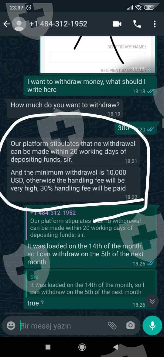 起初他们说可以提取10,000美元,告诉我要等20天才能提取资金。我等待的中途盈利$10,000,不过当我取款的时候,还需要入金10,000