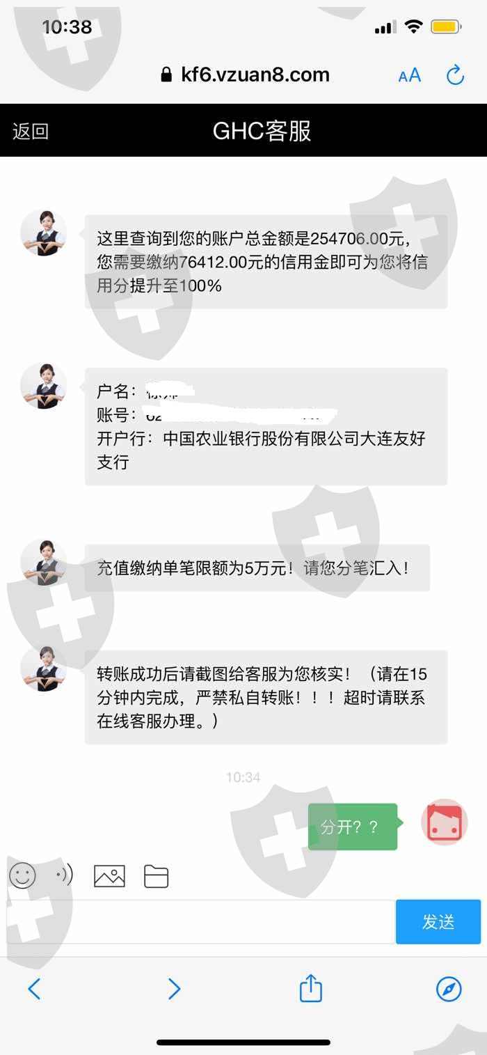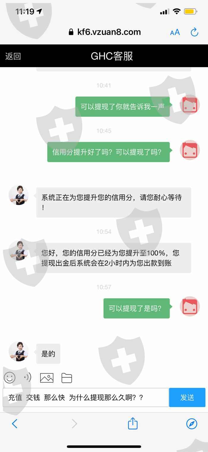 GHC平台 无法出金 一而再再而三的叫充值钱 各种理由叫充值 到最后还是无法提现 我个人被骗了33万元了