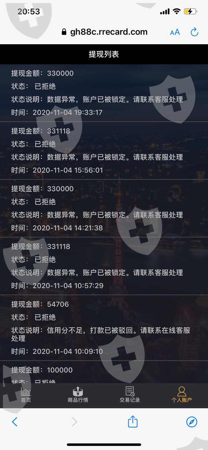 无法提现出金 老是叫充值 都是套路刚开始说银行账号不对 要交账户上的20%认证金 50941元再后来又说信用分不到100分 又要交76412元 后面还要交12万