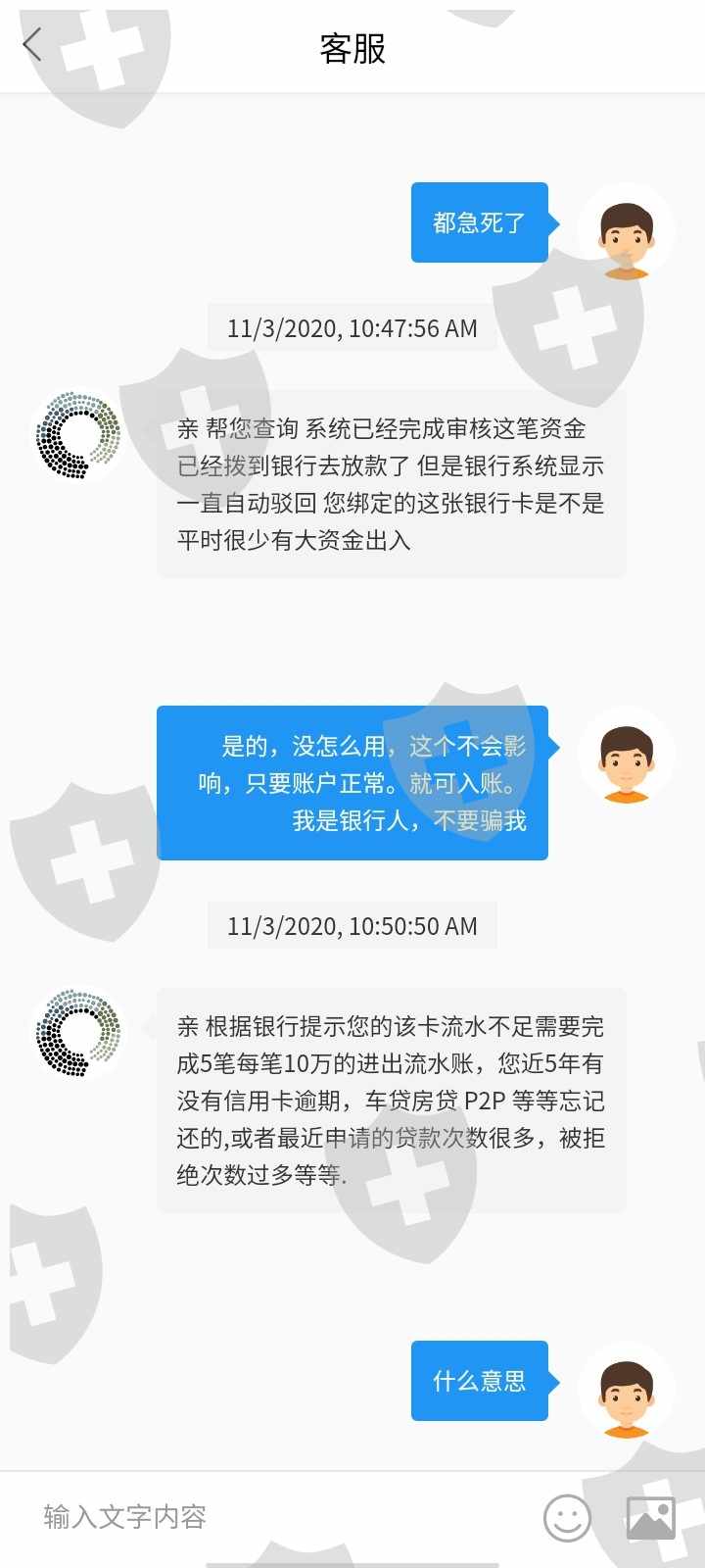 平台反应绑定的卡在平台财务账户上的流水不足,将账号冻结,需5笔10万的资金转到平台财务账户上才能放款。请解决