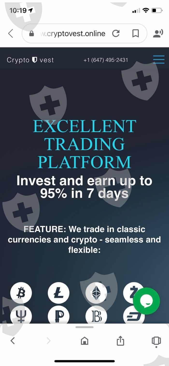骗子1000美元,当我开始提取我的钱时要钱。她仍在菲律宾CRYPTOVEST HERE公司招募人员。