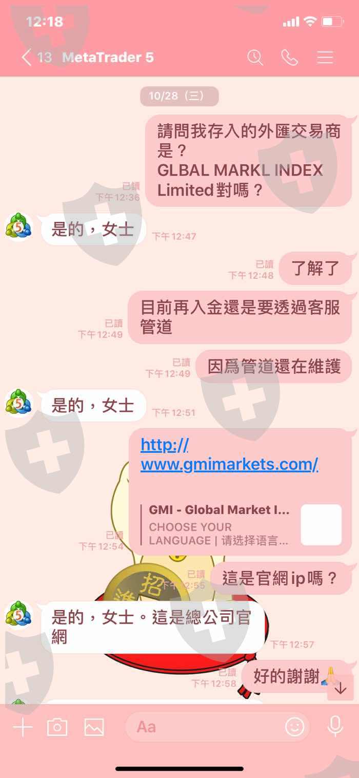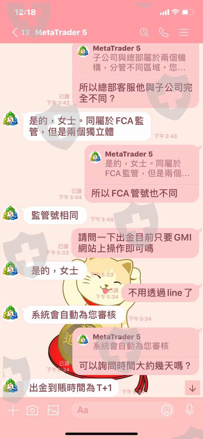 網站跟GMI一樣頁面。堅稱是GMI子公司FCA同監管號,假的是用GMI行詐騙,這是假的!無法出金!把平台帳戶錢給出金但没有匯錢到帳户。客服消失!千萬別上當!