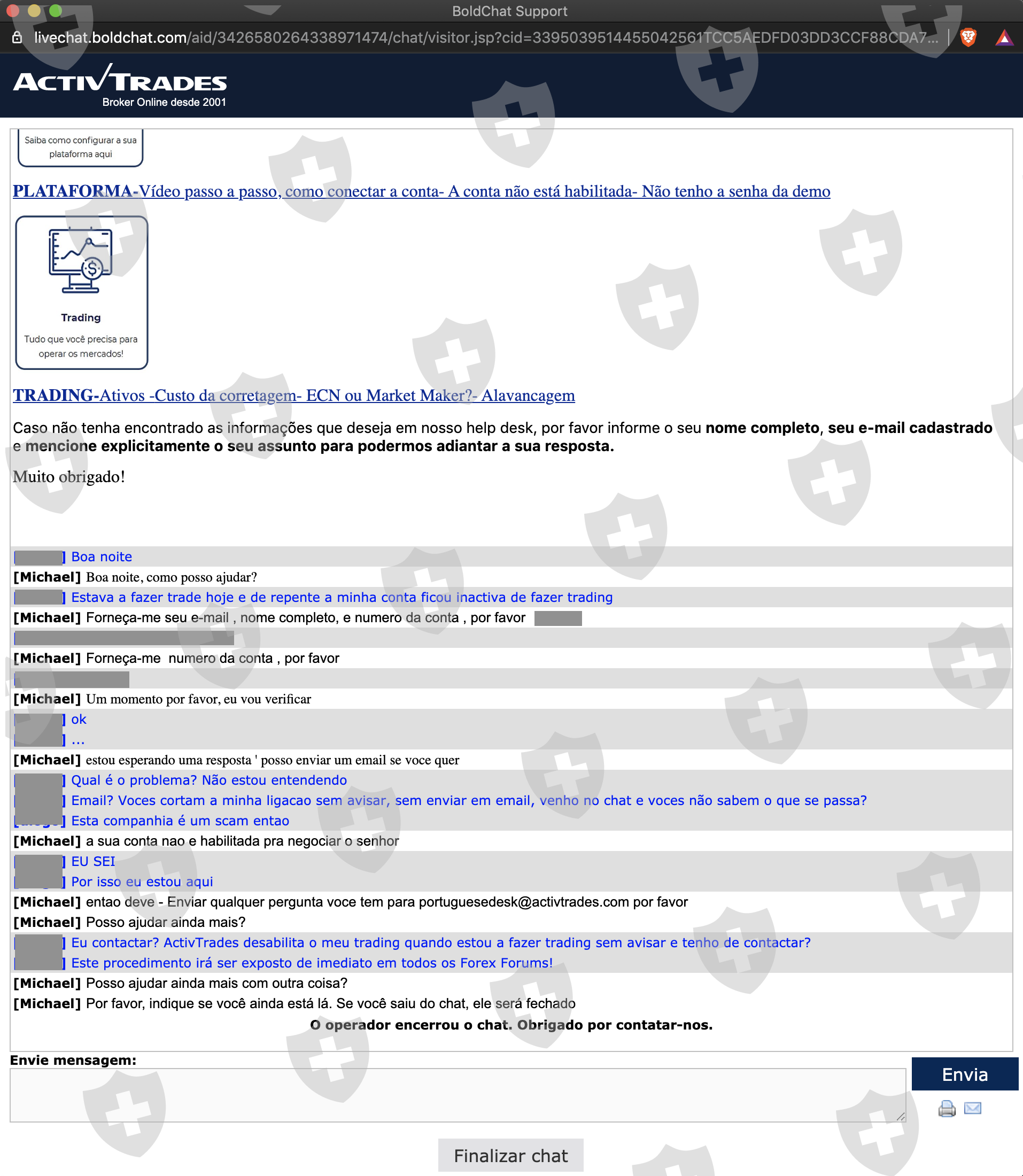 我在平台上交易了2天,从一瞬间起,他们意外地断开了我的交易帐户并使其失效。在我与在线聊天联系并询问为什么我的账户在交易时无法交易之后,我一直等了5分钟以上,但他没有回复,五分钟后他才通过电子邮件回复了联系,但在断开连接后,却没有让我知道出了什么问题。