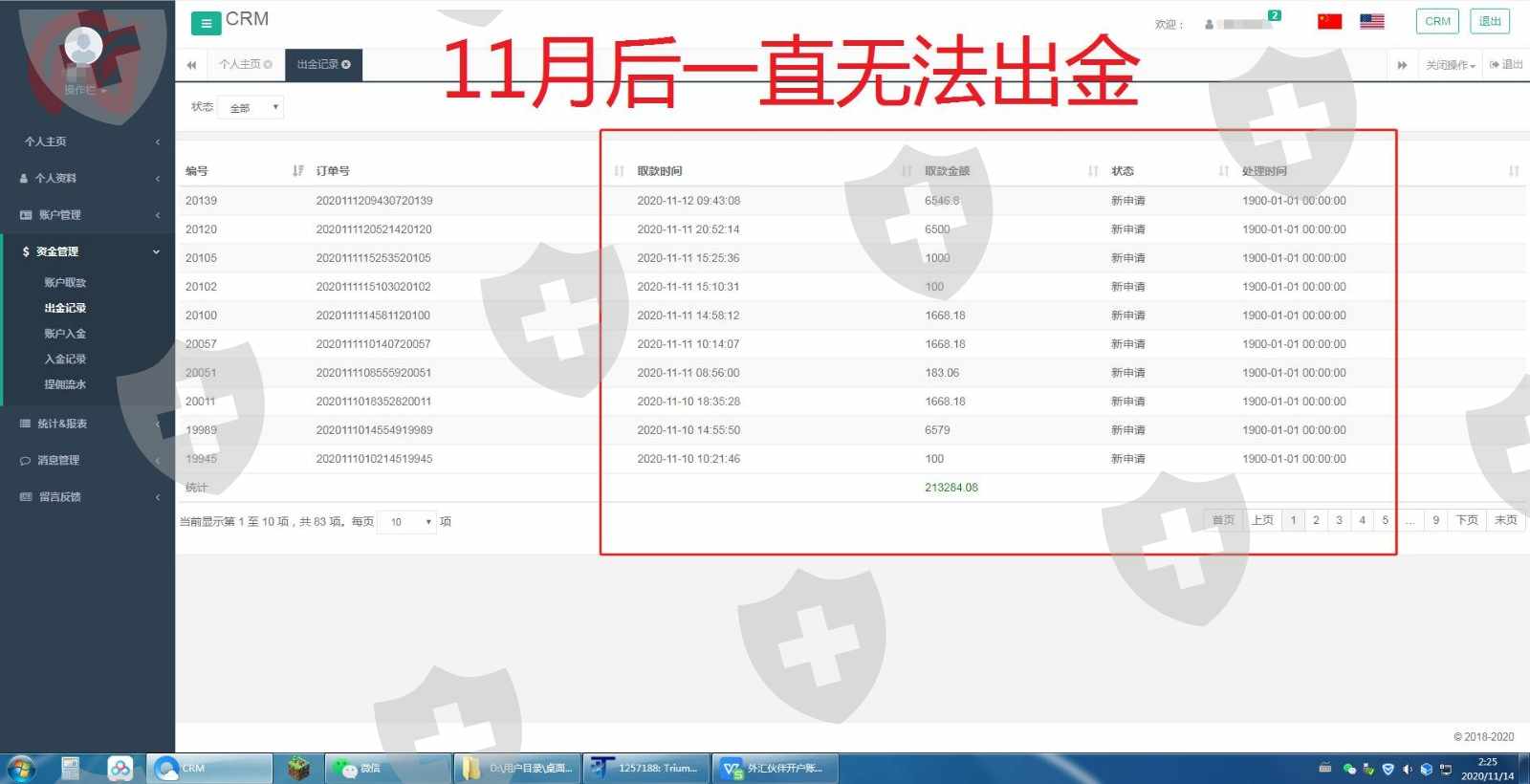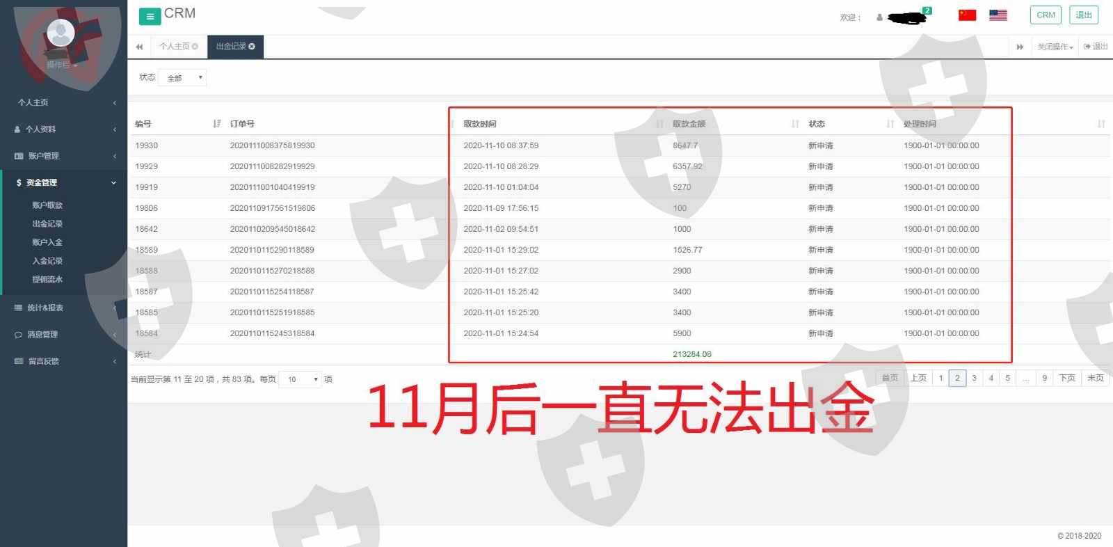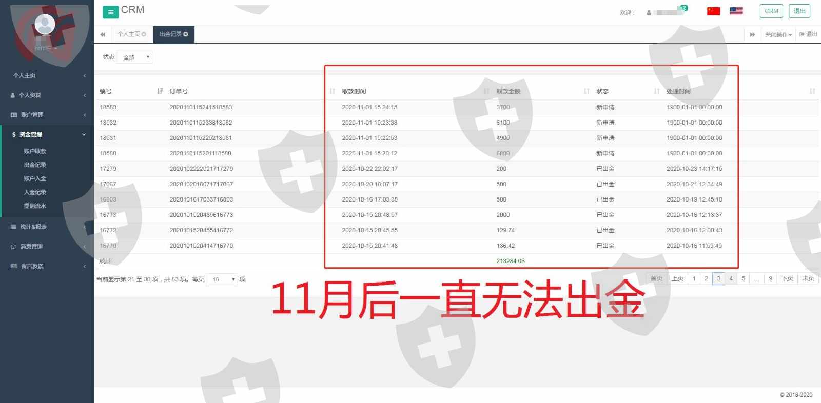 从2020年10月27日起,申请的出金全都无法到账,因此曝光,骗子平台