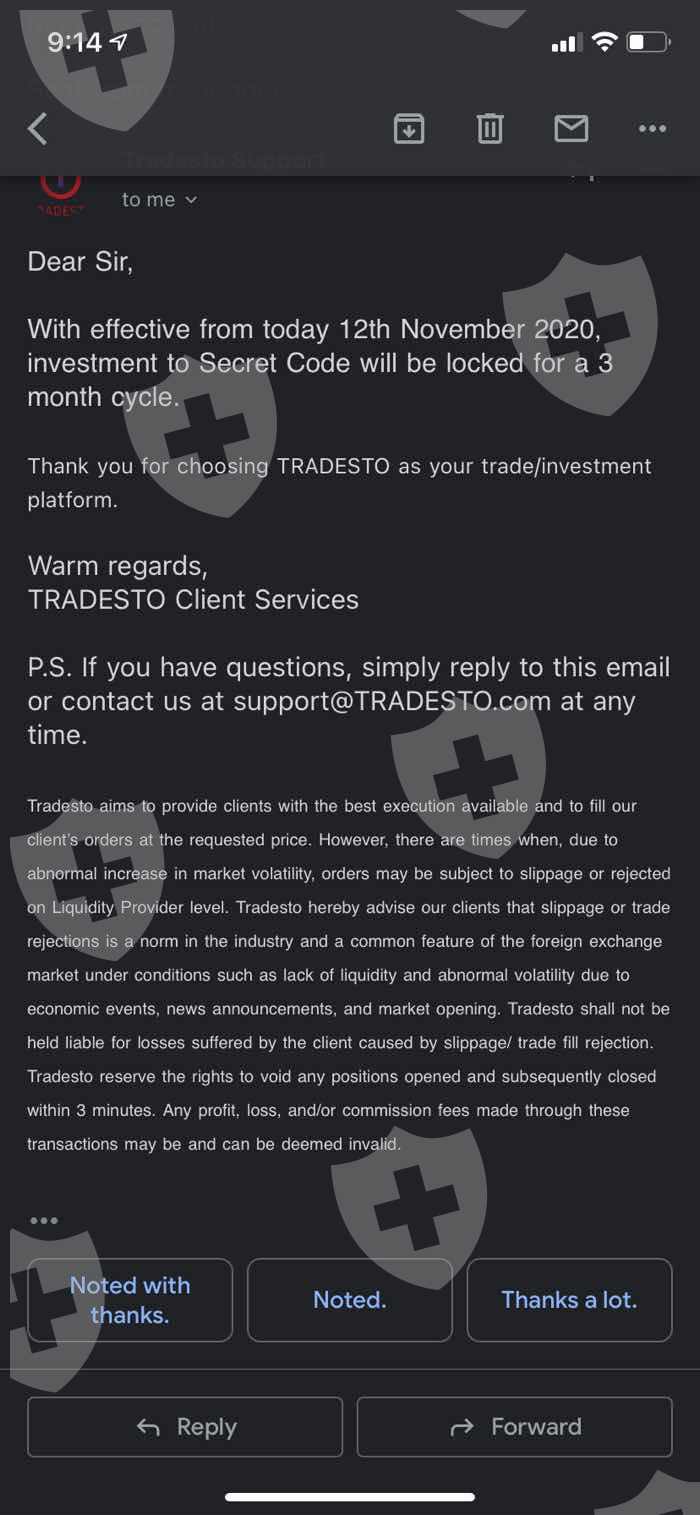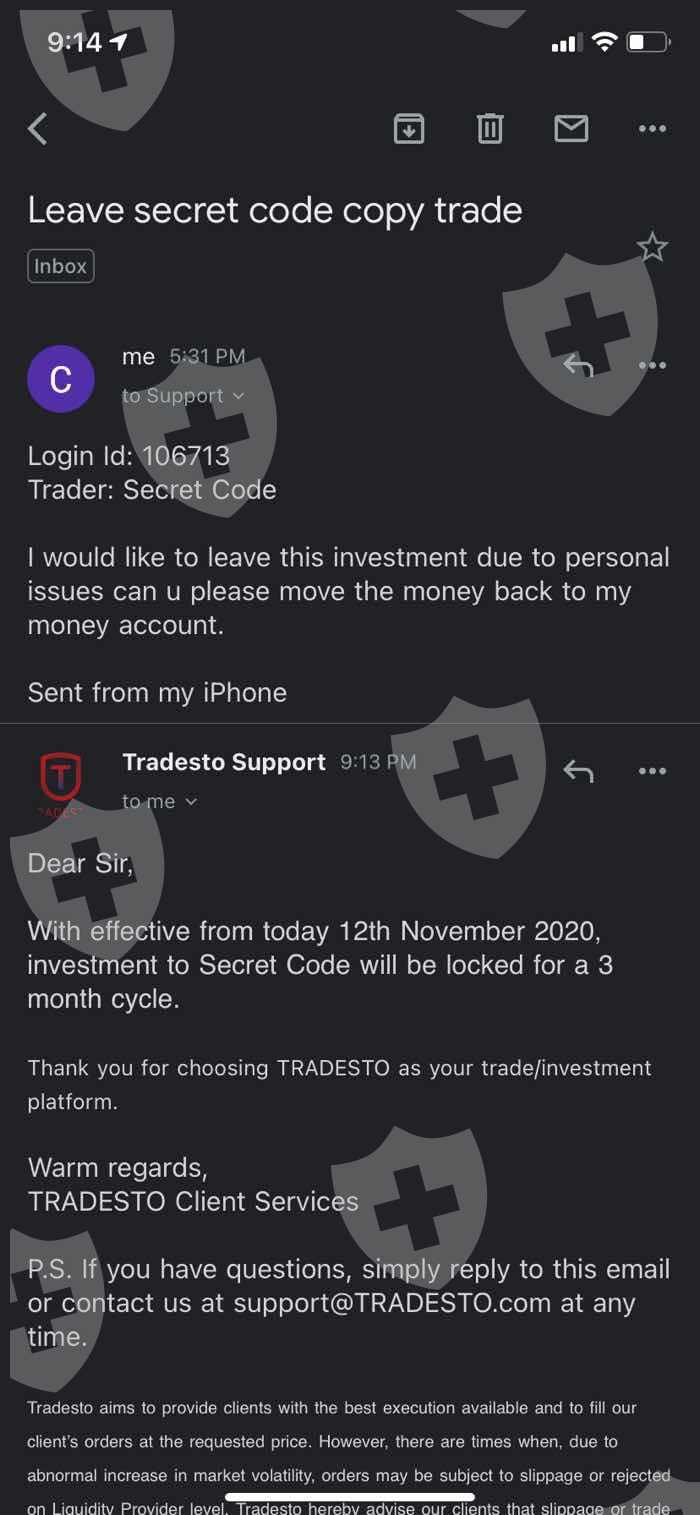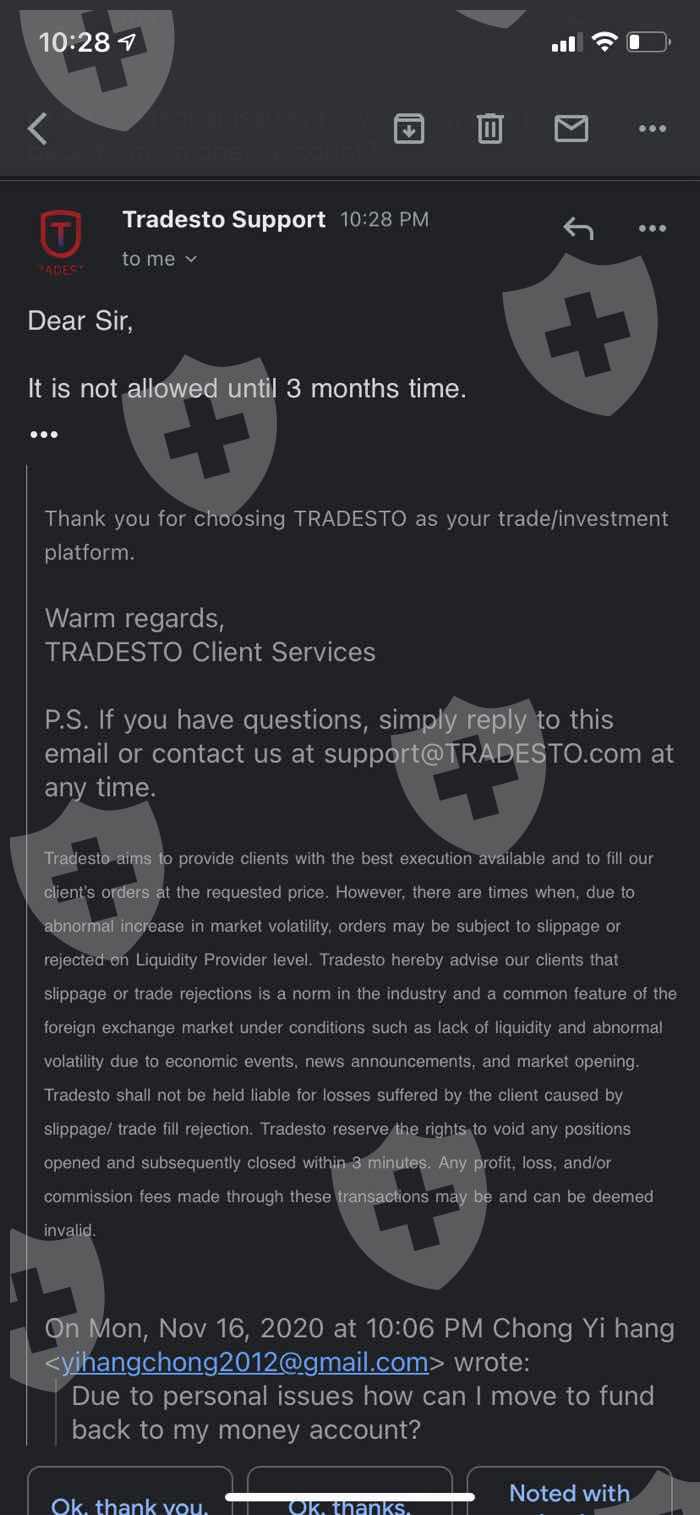 我的账户经理没经过我的允许 就擅自转了我的钱去copy trade acc 然后我已经联系tradesto 客服了也不让我出金。现在账户经理不负责 tradesto就说要等三个月 好黑啊