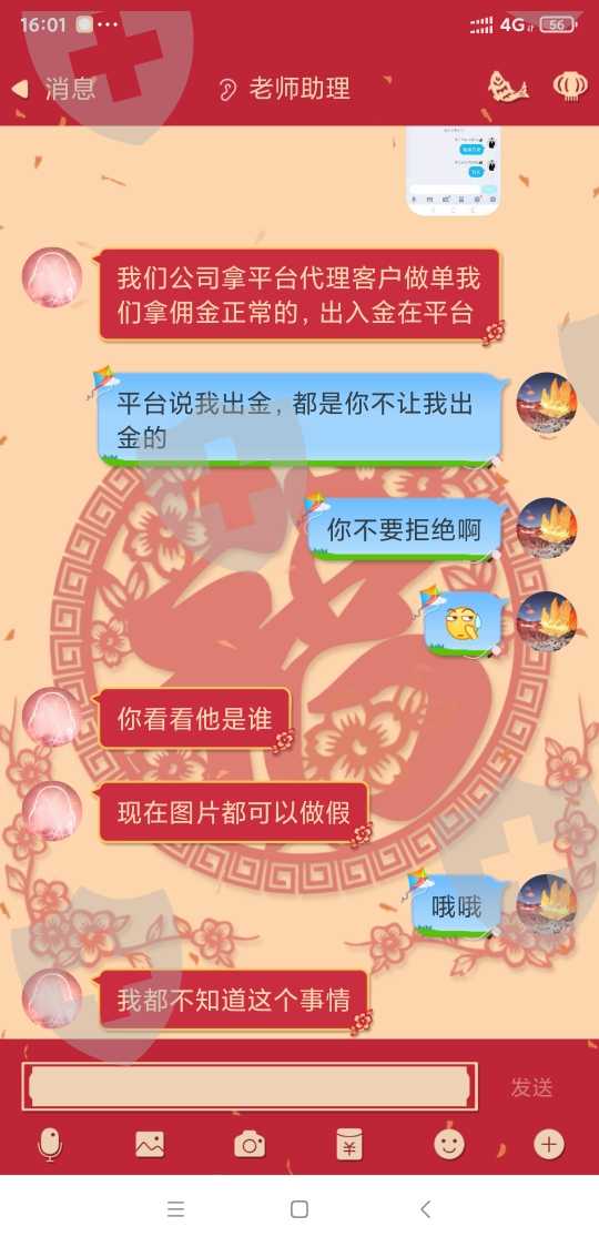 刚入金2000美金,想试试出金结果被拒绝,助理说是平台不给出金,平台客服说是已经出金给助理了,相互推,叫报警,黑平台,千万别入金啊,入金就会禁止你登录后台,客服跟助理都是在忽悠!
