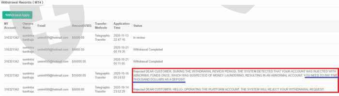 โบรคเกอร์ต้มตุ๋น หลอกให้ฝากเงินแล้วมีคนนำเทรด เทรดไ้ด้วันละ หลายพันดอล แต่เบิกเงินไม่ได้ บอกว่าต้องเติมเงินเพิ่ม5000 ดอล ถึงจะเบิกได้