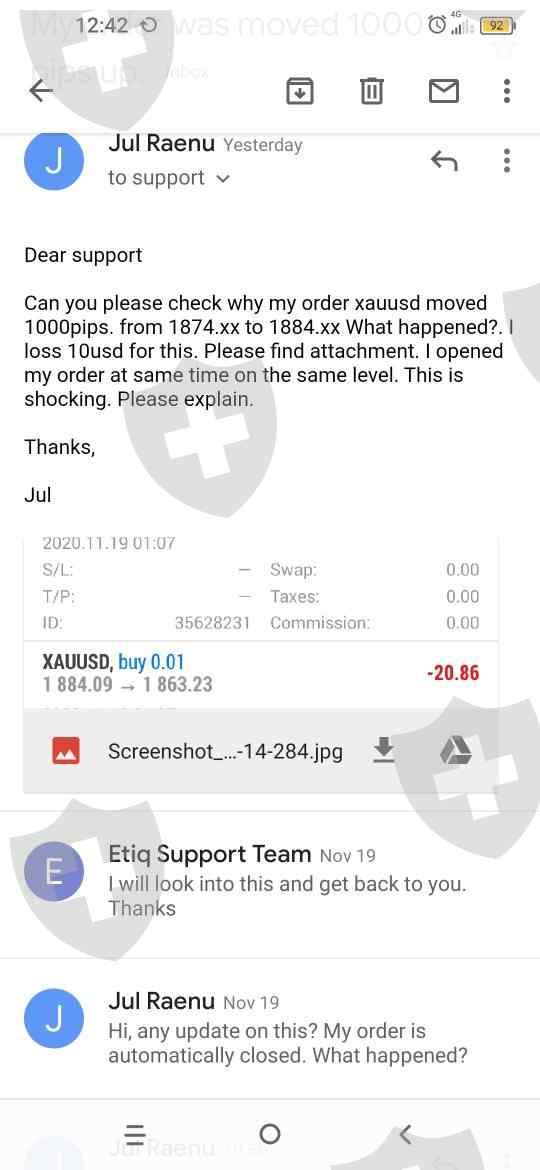 投资朋友们,请远离该交易商。我于2020年10月19日交易了xauusd。(请参阅附件)。我在1874.xx开设了xauusd两个仓位。令人震惊的是,傍晚,我的一个仓位变成1884.xx。 (比我的下单要高1,000点),最终我损失了10美元。我写了一封有关该问题的电子邮件,但从未解决。他们无故自动关闭了我的帐户。这根本就是无良交易商。请远离。真的太失望了