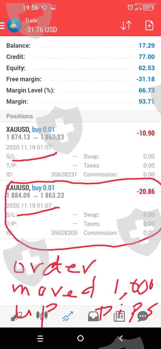 stay away from this broker. I traded xauusd on 19 October 2020. (see the attachment). I opened two positions of xauusd at 1874.xx. shockingly, later in the evening, one of my positions was moved to 1884.xx. (1,000pips higher from my placed order) which eventually, i lost 10$..i wrote an email about the issue but never solved it. they autoclosed my account without valid reason. this is a type of bad broker.stay away.